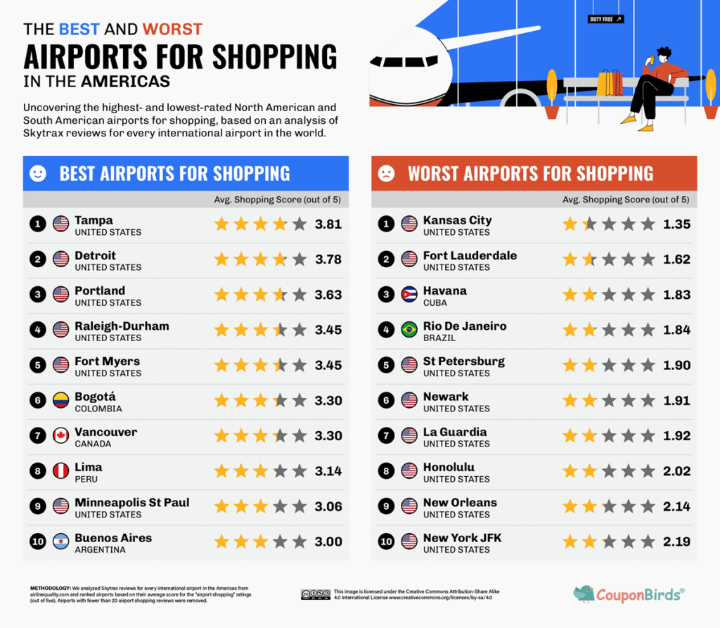 aeropuertos para una mejor experiencia de compras, CouponBirds analizó miles de