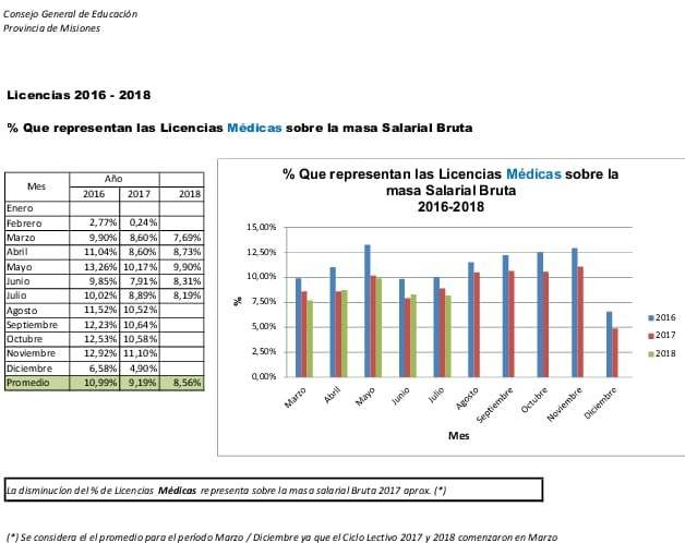 En todos los meses hubo una caída de las licencias en relación con la masa salarial bruta y a julio apenas superaba el 8.1 por ciento, el piso más bajo del que se tenga registro, contra 8.89 del mismo mes del año pasado y 10.02 de julio de 2016.