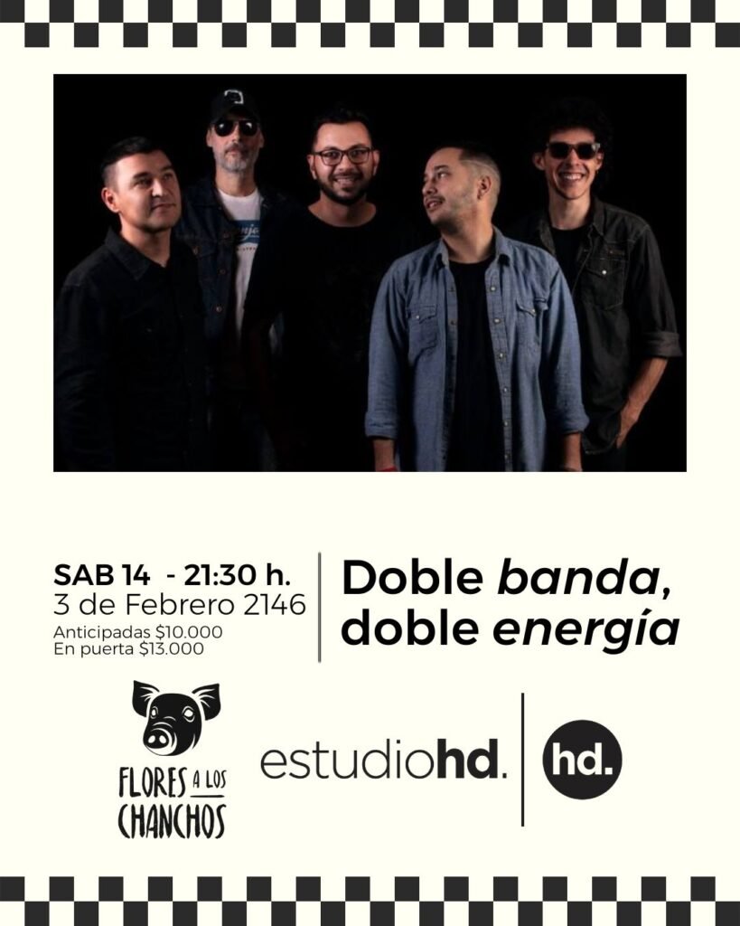 La noche se complementará con Flores a los Chanchos y su mochila llena de rock, reggae y aires del litoral en una propuesta festiva y bailable. Integrada por Daniel Carena en voz, Marcelo Kuczek en guitarra y coros, Matías Franco Meza en bajo y coros, Alejandro Nanio en saxo y Fernando Solís en batería, el grupo ha recorrido escenarios de Misiones, Corrientes, Buenos Aires y Paraguay, consolidando un sonido propio dentro de la escena regional.
