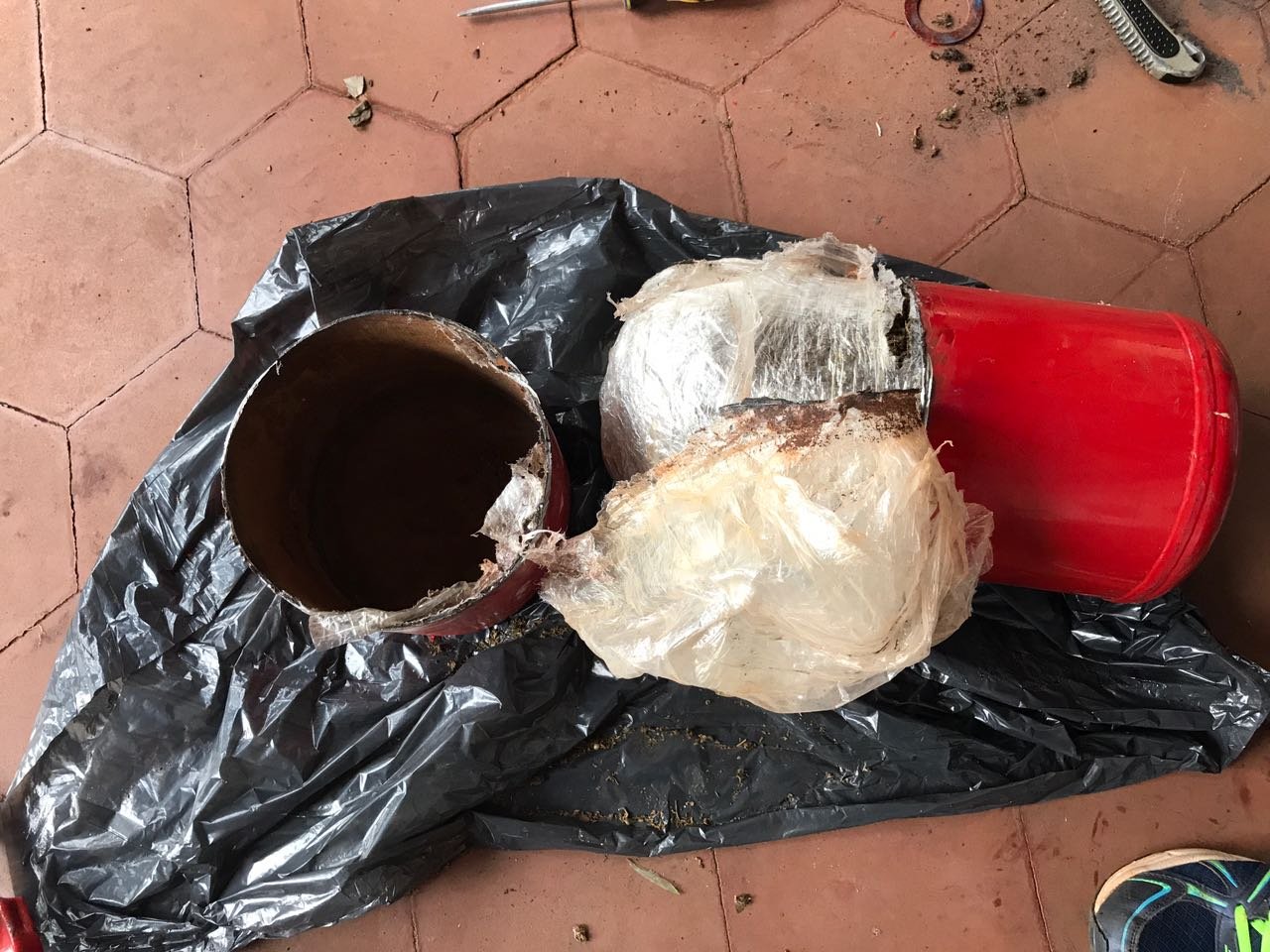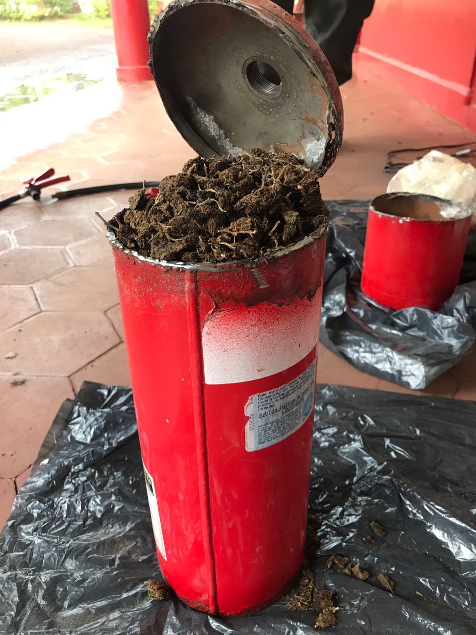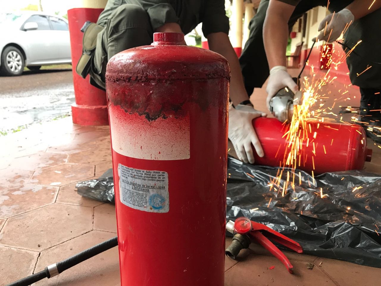 Los funcionarios detectaron en el interior de dos cajas la existencia de tres matafuegos de mediana medida, con soldaduras y pintura reciente. Al abrir los tubos con la ayuda de una amoladora se halló una sustancia vegetal. La cual al ser sometida a las pruebas de campo Narcotest arrojó resultado positivo para “cannabis sativa”. Con un peso total de 5 kilos 105 gramos.