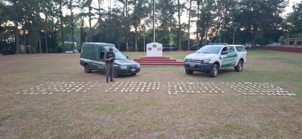 Ante este hecho, los funcionarios solicitaron apoyo al personal de la Unidad de Investigaciones de Delitos Complejos y Procedimientos Judiciales “Eldorado” y a la Sección “Montecarlo” para llevar a cabo un rastrillaje por la zona montuosa, a unos metros se halló entre la vegetación cuatro bultos abandonados, que acondicionaban 216 paquetes rectangulares, similares a los utilizados para el transporte de estupefacientes.