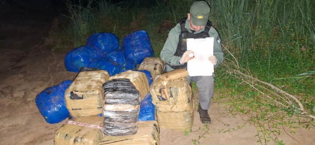 Dos horas más tarde, en la localidad de Colonia Mado, los uniformados observaron a un grupo de personas que se encontraban a bordo de una canoa y quienes al percatarse de la presencia de los efectivos de la Fuerza, arrojaron 22 bultos sobre la desembocadura del Río Paraná. Se incautó un total de 495 kilos 400 gramos de cogollos y marihuana prensada.