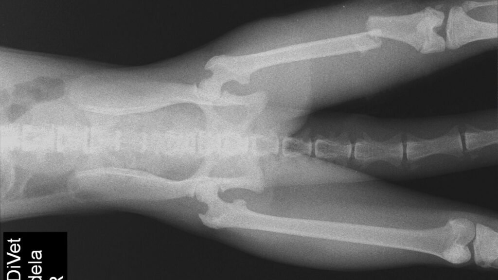 La mona ingresó con una fractura expuesta de fémur, lesión de alta complejidad en la que el hueso se quebró y perforó tejido antes de reingresar, generando un cuadro crítico. Tras su evaluación clínica inicial, el equipo profesional procedió a su estabilización con fluidoterapia y medicación específica. Una vez compensada, se programó y realizó una cirugía traumatológica en la que se colocó una placa y cuatro tornillos para reparar la fractura.