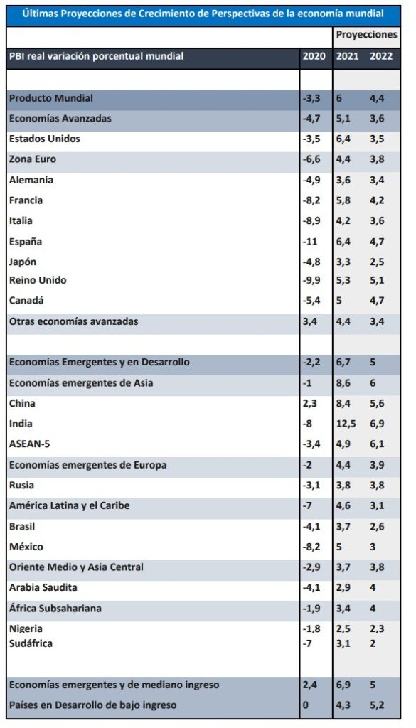 Según las últimas proyecciones del FMI realizadas en abril del corriente año, el organismo internacional pronostica para nuestro país un crecimiento en orden del 5,8% para el 2021.
