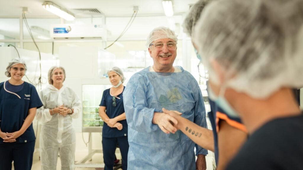 La visita comenzó en el laboratorio de cultivos in vitro, donde se interiorizó sobre el trabajo en la cámara de crecimiento de distintas especies, entre ellas banano, ornamentales, flores, orquídeas y árboles nativos. Luego, recorrió la sala de siembra, donde observó las tareas que se realizan en cabinas de flujo y dialogó con el equipo técnico sobre los procesos productivos.