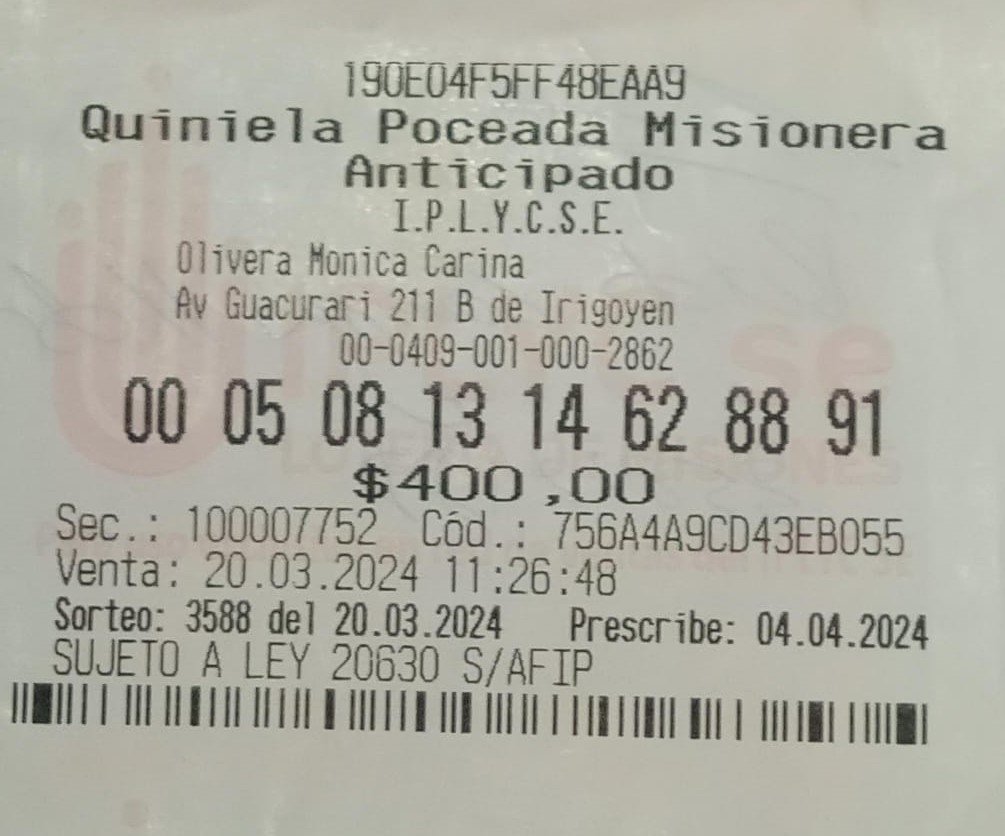 Un empleado de Bernardo de Irigoyen se llevó el pozo récord de la Quiniela Poceada Misionera que salió sorteado en la noche del miércoles 20.