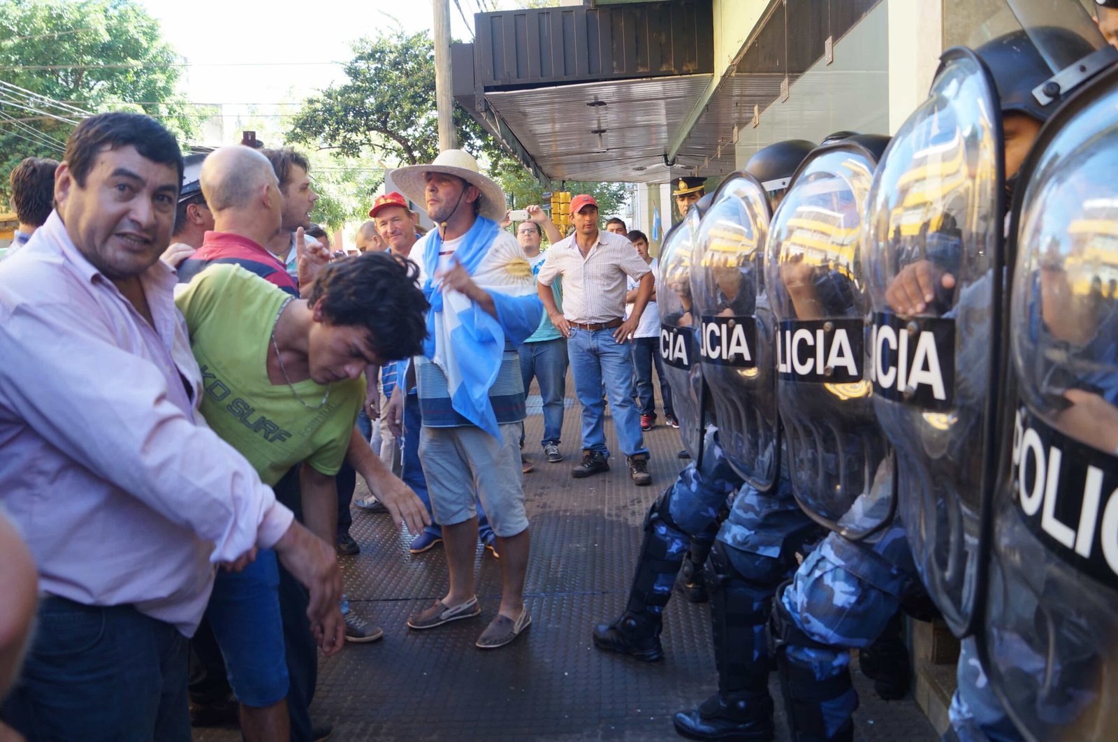 La semana pasada, luego del desaire que les significó la reunión con los subsecretarios Hardie y Urriza los productores y tareferos habían anunciado que el paro general y las manifestaciones eran las formas que les quedaban de reclamar. Hoy esa manifestación llegó a Posadas y la toma de las oficinas del INYM incluyeron disturbios y golpes cruzados con personal policial.