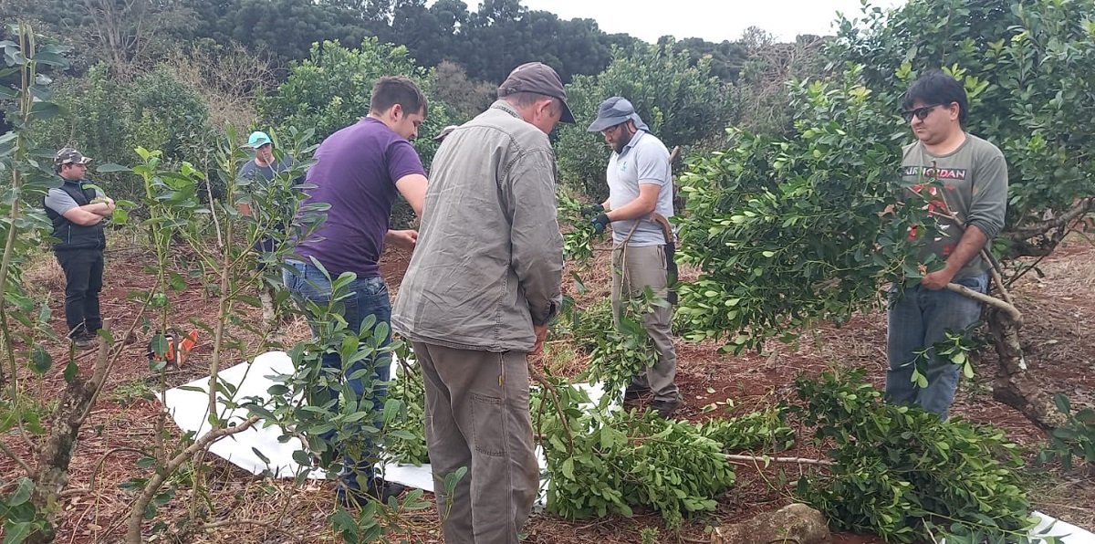Productores de la zona de Colonia Laharrague, de la localidad de Montecarlo, y técnicos del Servicio de Extensión Yerbatero (SEY) del INYM compartieron el lunes 11 de julio una Jornada de Capacitación en Cosecha, Poda de Formación y Rebaje de Yerba Mate.