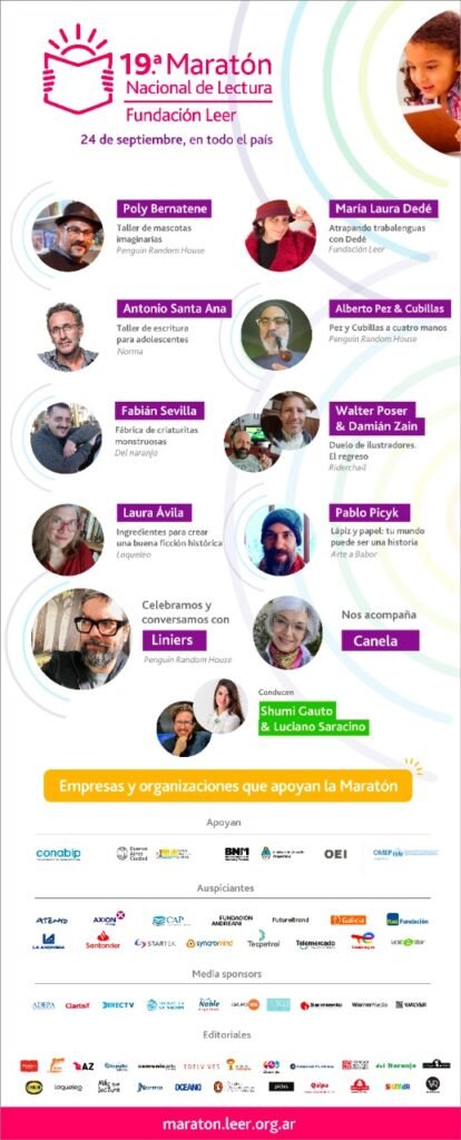 Para el 24 de septiembre ya se sumaron reconocidos escritores e ilustradores: Antonio  Santa Ana, Laura Ávila, Fabián Sevilla, María  Laura Dedé, y los ilustradores Poly Bernatene, Alberto Pez, Roberto Cubillas, Damián Zain,  Walter Poser, y Pablo Picyk. Como cierre, con la conducción de Luciano Saracino y Shumi Gauto, se espera la participación del historietista Liniers.