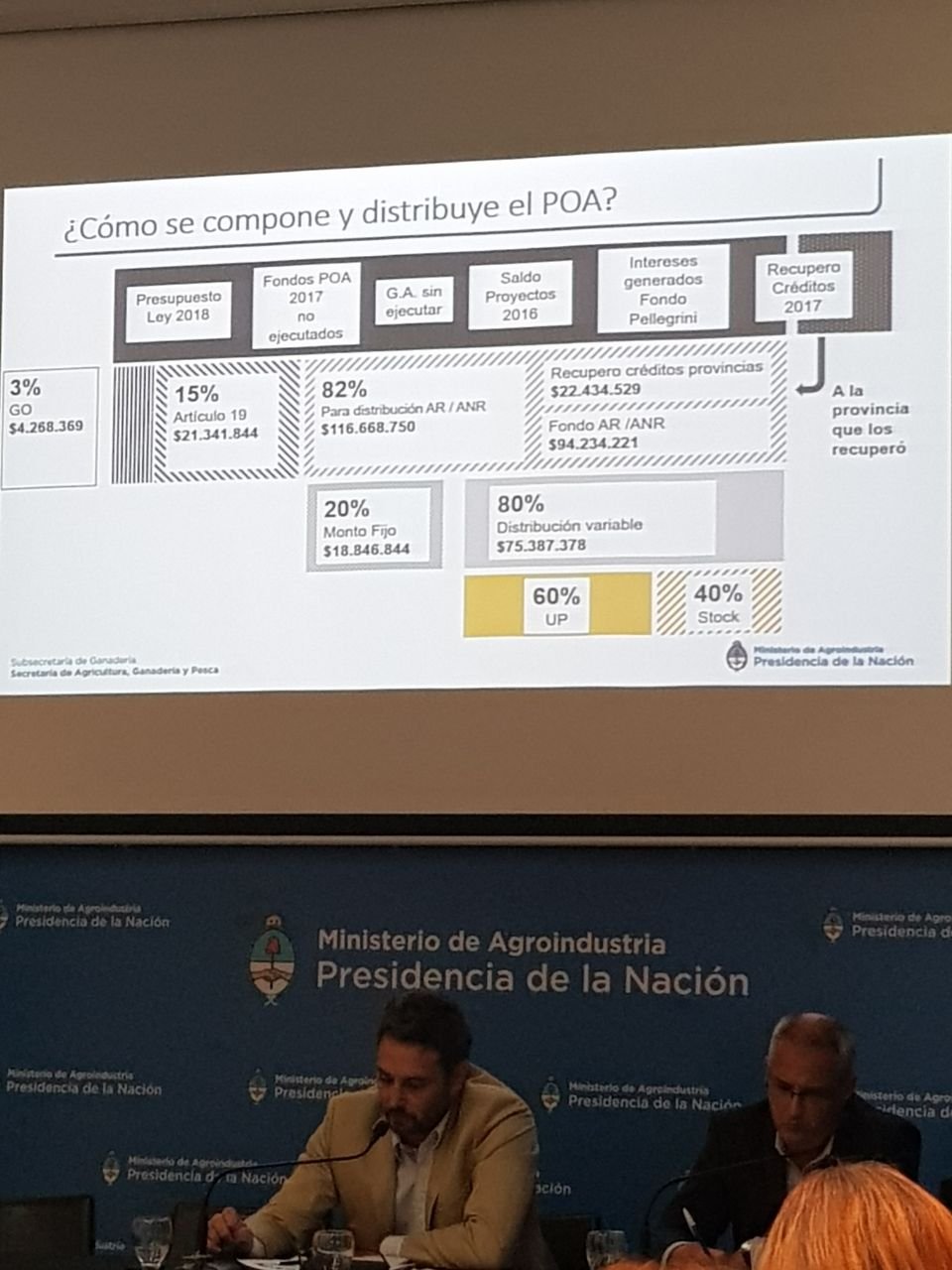 Por su parte, la nación presentó una propuesta de la distribución de los fondos del POA 2018, donde Misiones va a tener, para este año, una ejecución por un millón trescientos sesenta y seis mil pesos ($ 1.366.000), de los cuales el año anterior, en la distribución final del POA 2017se ejecutaron programas por 990 mil pesos, prácticamente todo”, expresó el subsecretario de Desarrollo y Producción Animal del Ministerio del Agro y la Producción, doctor Cesar Berger, quien estuvo en representación del gobierno provincial. Y agregó además que, para este año, la Provincia de Misiones pudo conseguir un incremento de los fondos para esta actividad.
