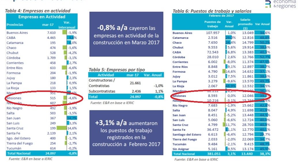 En ese sentido, los datos difundidos en el informe de E&R, indican que en marzo había en la provincia 515 empresas (de todos los tamaños) registradas, una merma de 4,6% respecto al mismo mes del año anterior. En este rubro, Misiones también resultó ser el 5to peor distrito del país, aventajando solamente a Buenos Aires, Entre Río, Neuquén y Santa Cruz.
