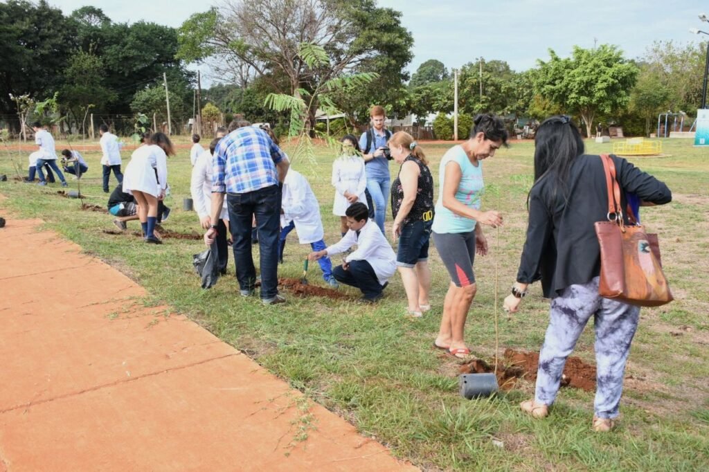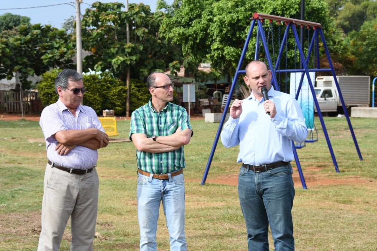 El director ejecutivo de la Entidad Binacional Yacyretá (EBY), Martín Goerling, habilita tres plazas en el barrio Nuestra Sra. Del Rosario y apoya la iniciativa de los alumnos de la escuela N° 541 quienes plantaron árboles nativos para conmemorar el Día de la Tierra.