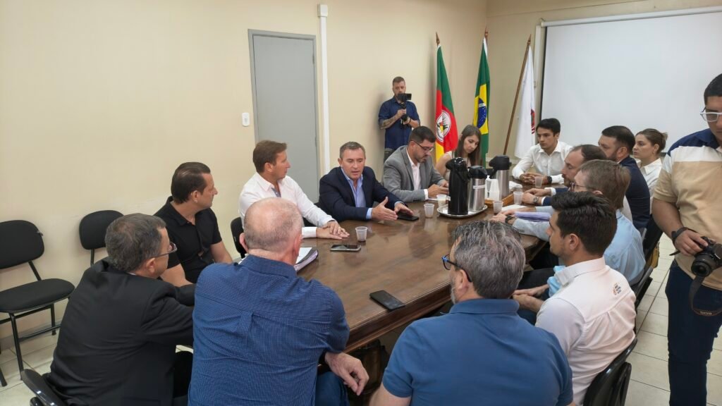 El prefeito de Santa Rosa, Anderson Mantei, acompañó al presidente de la Legislatura de Misiones, Sebastián Macías; al ministro coordinador de Gabinete provincial, Carlos Sartori; al intendente de Oberá, Pablo Hassan, y a integrantes de la comisión organizadora en la presentación del evento ante medios brasileños.