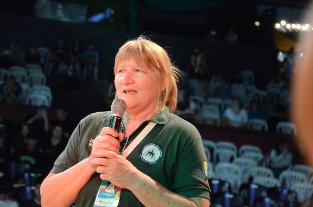 Betiana Salomón (Técnica Universitaria en LSA), asesora Sorda del equipo de interpretación de Lengua de Señas Argentina (LSA) de la FNI, agradeció a la organización por permitir que las colectividades hagan el curso. “Esto es lo que soñamos. La FNI es la primera fiesta nacional en contar, todas las noches, con traductores de LSA”, señaló Salomón, asistida por Paola Amarilla, miembro del equipo.