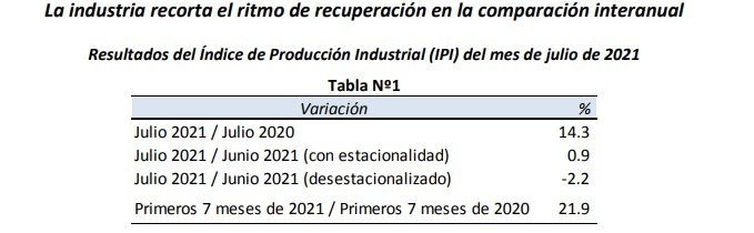 Resultados del Índice de Producción Industrial (IPI) del mes de julio de 2021