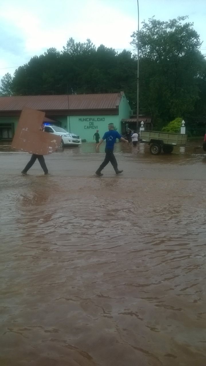La municipalidad de Capioví, sobre la ruta 12 (una de las colectoras) quedó tapada con más de medio metro de agua y los empleados y vecinos se movieron para evacuar documentos y otros elementos.