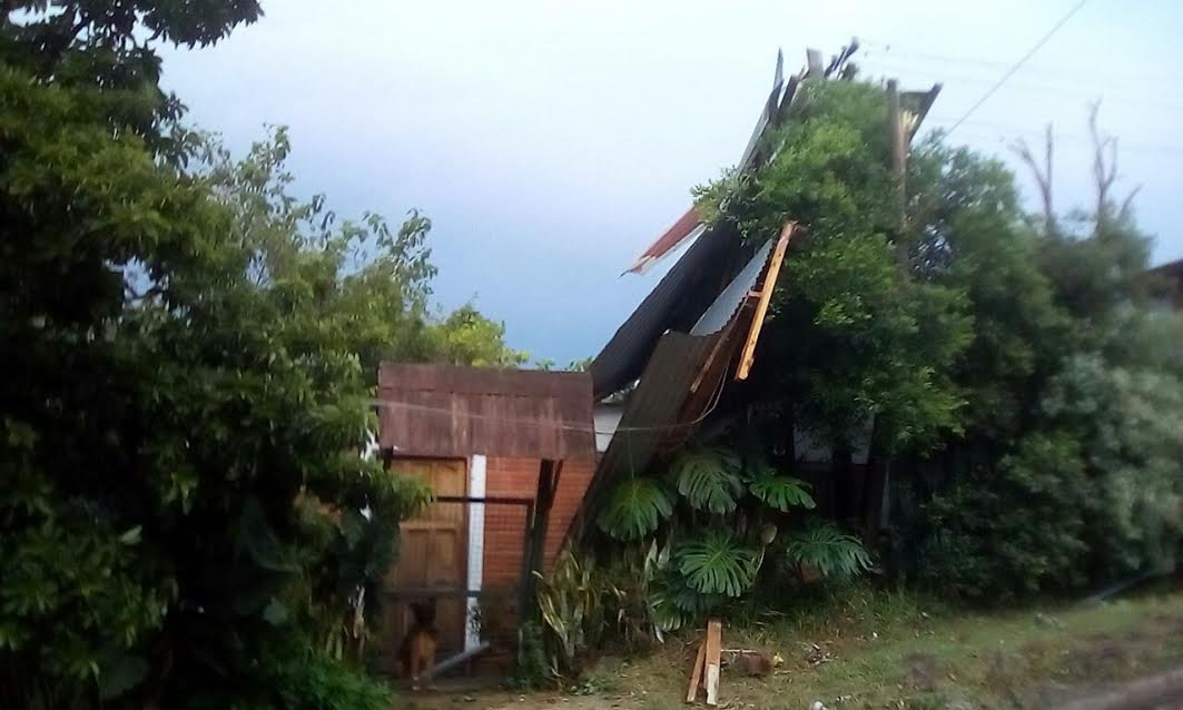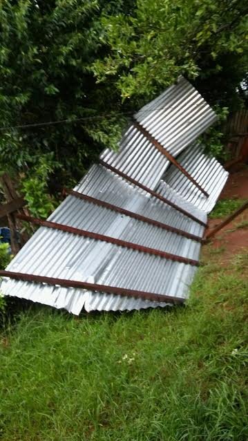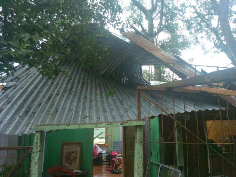 Sobre la localidad de Azara: se registró el desprendimiento del techo de zinc de una vivienda familiar. Sin lesionados.