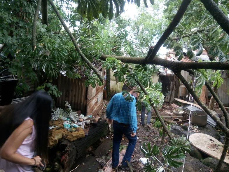 Zona de la comisaría 16ta: Dos casas de la chacra 181 resultaron con daños materiales, sobre una cayó un árbol de grandes dimensiones, en la otra voló el techo, además un poste de luz cayó sobre la calle.