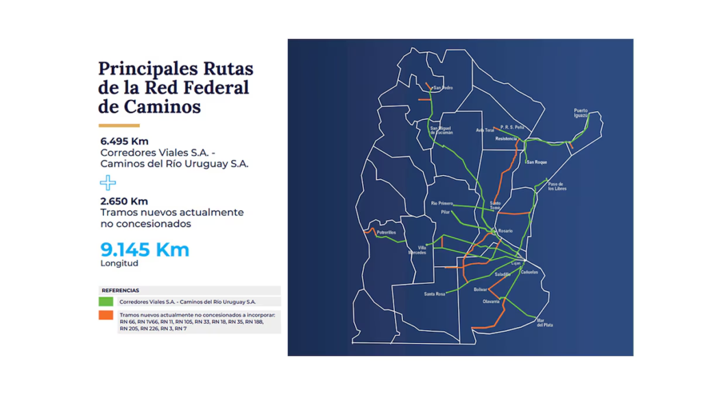 Se trata de un primer paso en un camino por avanzar en la privatización de las concesiones de más de 9.000 kilómetros de rutas y autopistas; en muchos casos sin adjudicar o a cargo de la empresa estatal Corredores Viales. Representa el 20 por ciento de la red vial nacional pero concentra el 80 por ciento del tránsito. Un negocio que puede ser atractivo para muchas empresas constructoras interesadas en la posibilidad de cobrar peajes y un ahorro previsto para el Estado, estimado oficialmente, equivalente a USD 6.100 millones en los próximos 15 a 20 años.