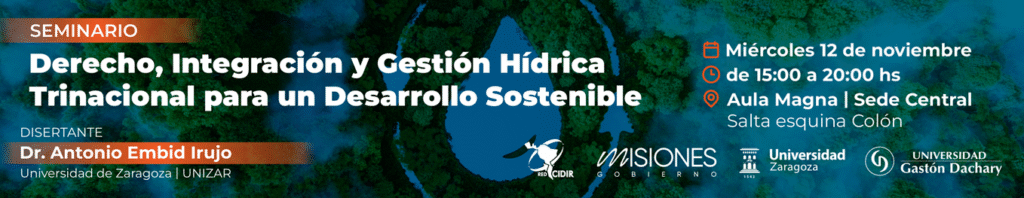 El próximo miércoles 12 de noviembre se realizará en Posadas el Seminario “Derecho, Integración y Gestión Hídrica Trinacional para un Desarrollo Sostenible”, una jornada que reunirá a referentes académicos y especialistas de Argentina, Paraguay, Brasil y España para debatir sobre los desafíos comunes que enfrenta la gestión del agua en territorios compartidos.