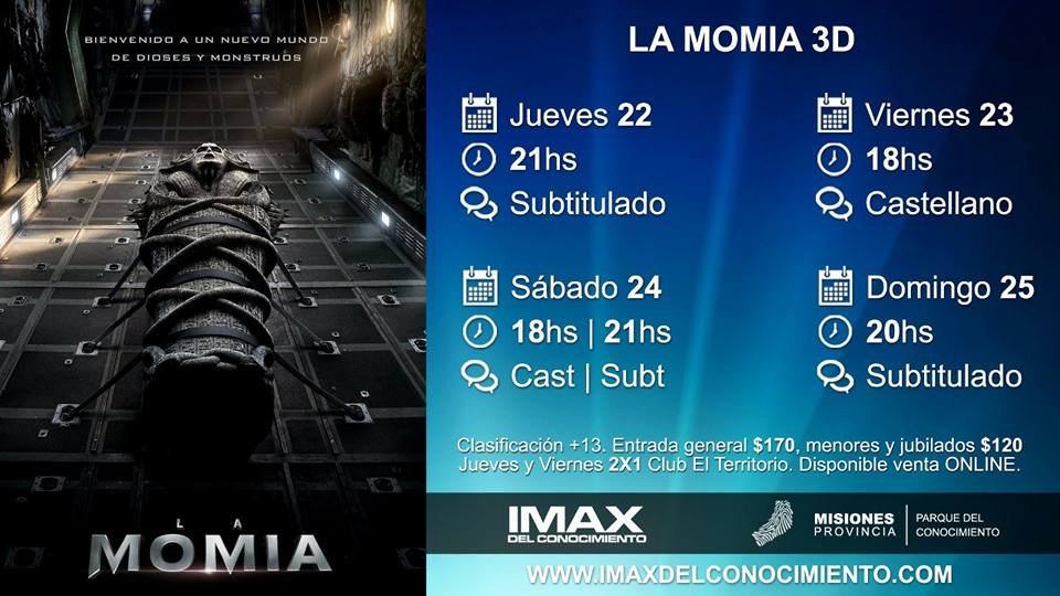 La Momia, líder absoluta en tickets vendidos, comparte cartelera junto a La Mujer Maravilla en un fin de semana con “ellas” como protagonistas. No olvides que las entradas ya se pueden adquirir de manera online con tarjetas de crédito y débito ingresando a imaxdelconocimiento.com