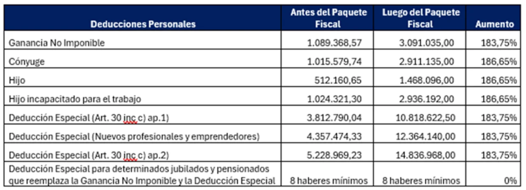Por otro lado, se incorpora una nueva deducción equivalente a la doceava parte de la sumatoria de las deducciones por ganancia no imponible, cargas de familia y deducción especial para empleados en relación de dependencia y jubilados.