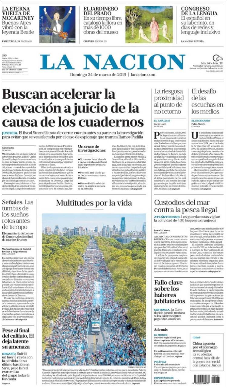 A continuación, repasamos las tapas de los diarios del domingo 24 de marzo. El regreso de Paul Mc Cartney a la Argentina, uno de los temas principales.