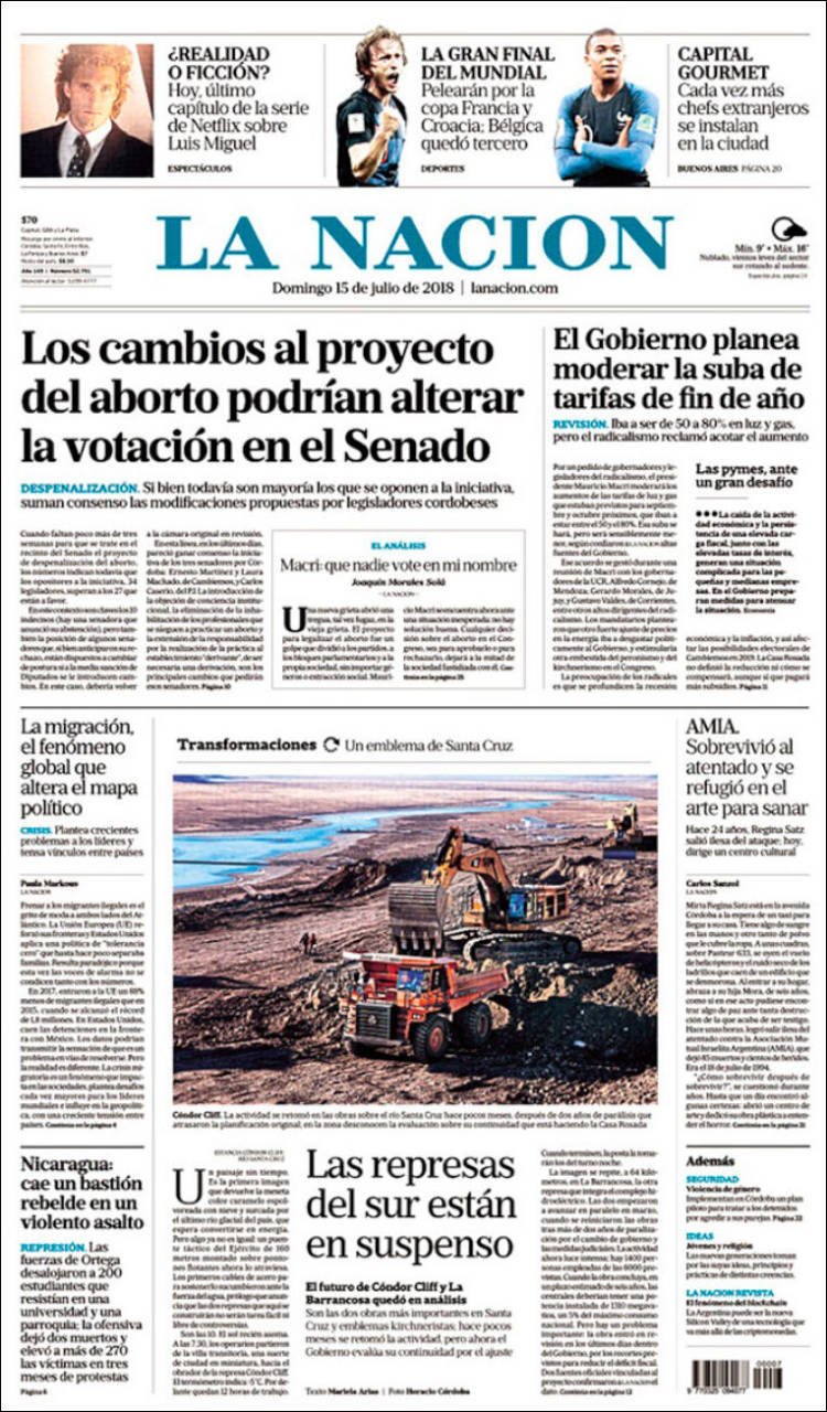 A continuación, repasamos las tapas de los diarios del domingo 15 de julio. Uno de los temas principales es la próxima votación en el Senado del proyecto para legalizar el aborto.