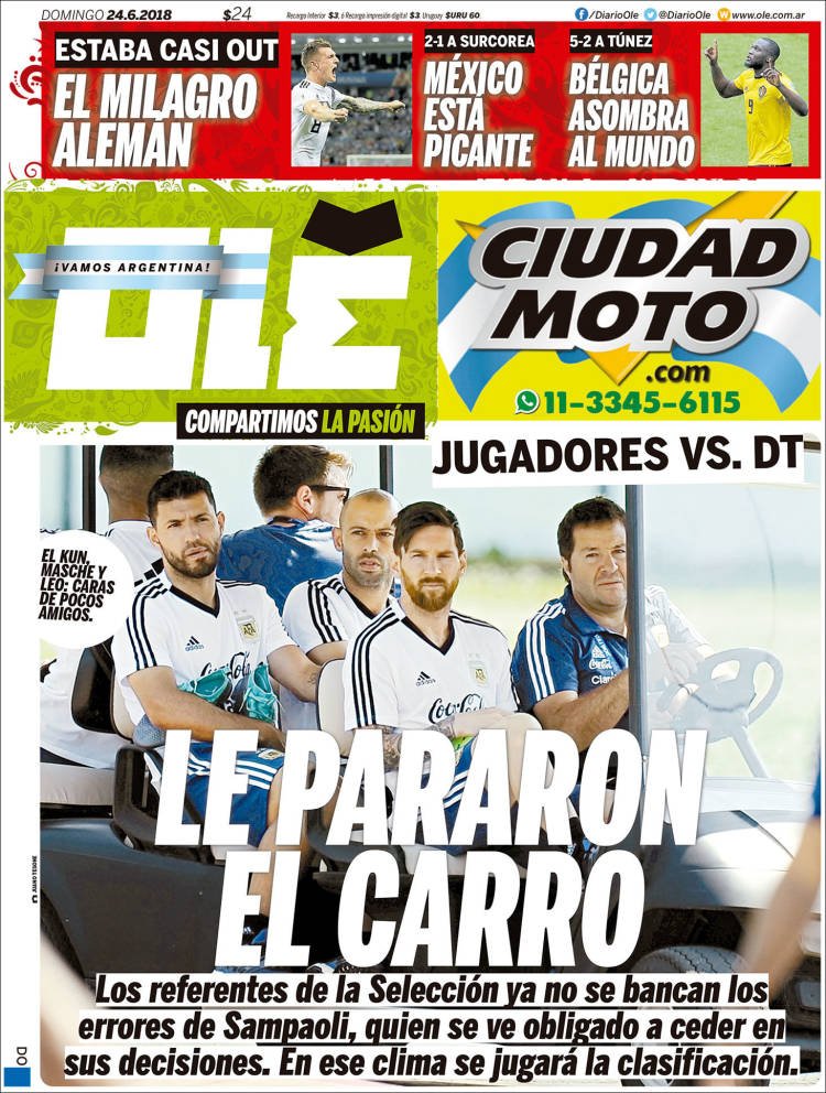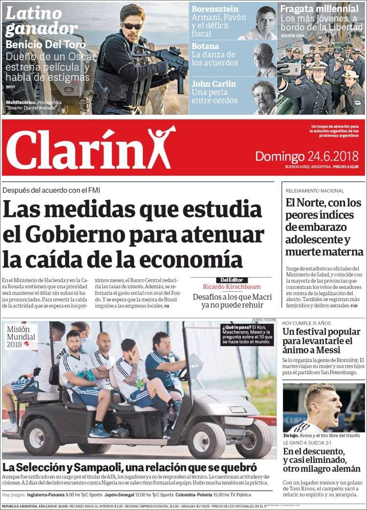 A continuación, repasamos las tapas de los diarios del domingo 24 de junio, donde las internas de la Selección son el tema dominante. También, los planes del Gobierno para atenuar el golpe a la economía que trajo la corrida cambiaria, la mayor inflación y las tasas altas.