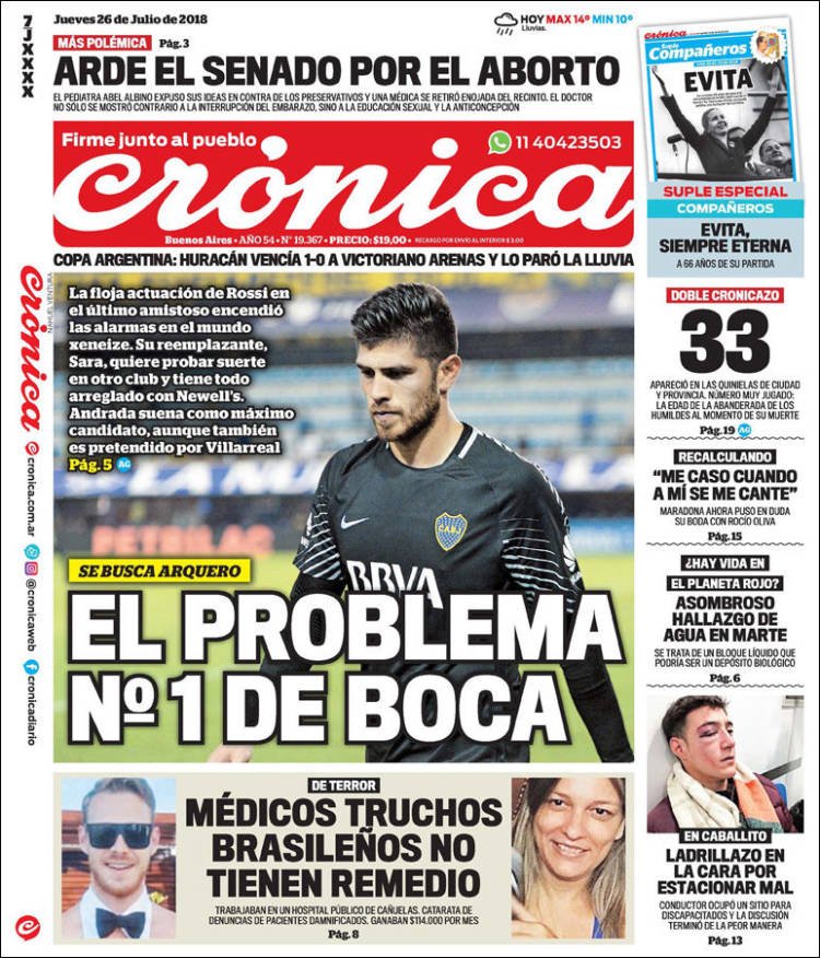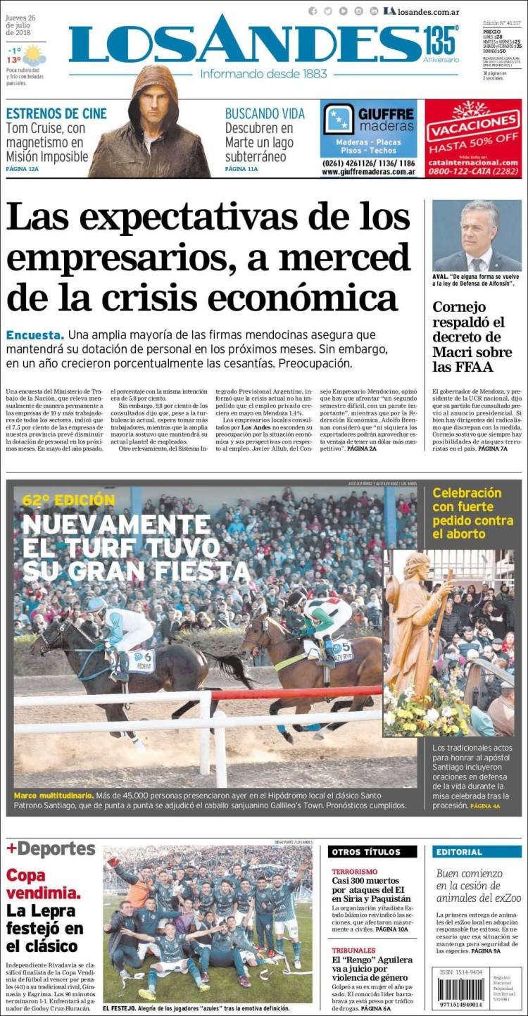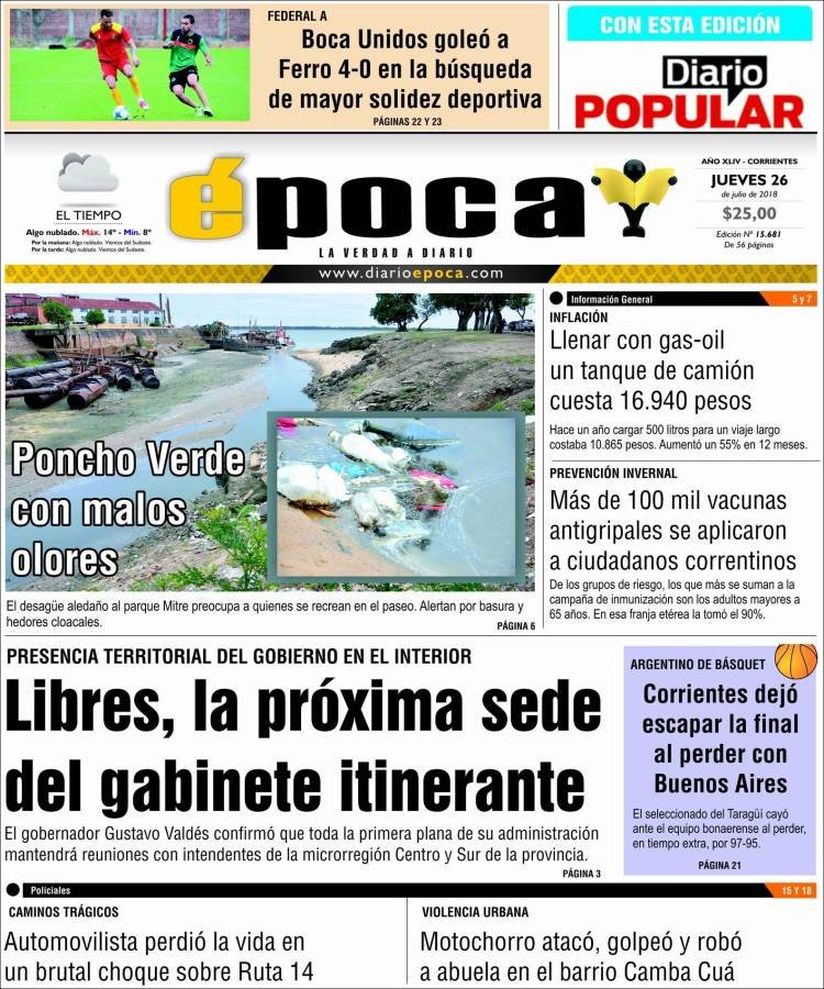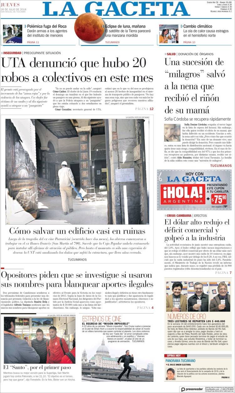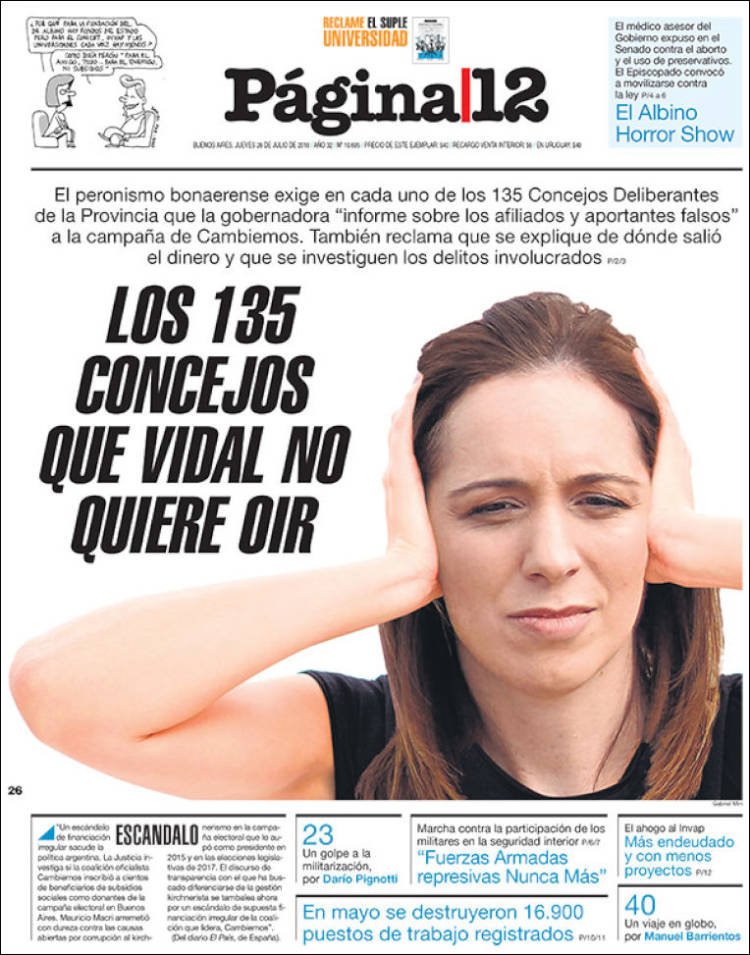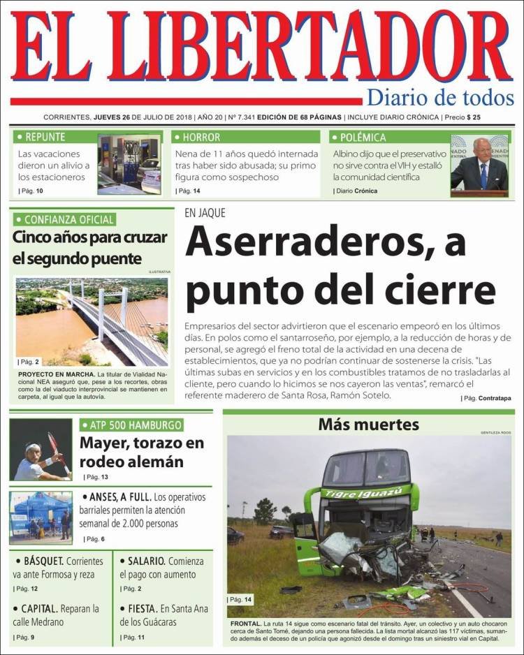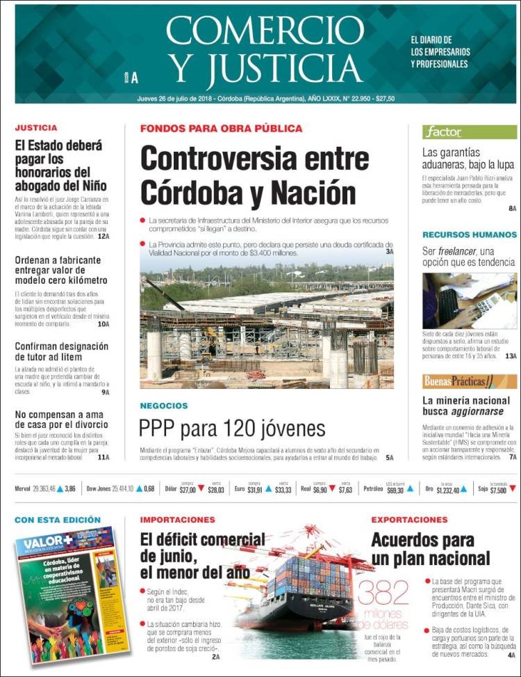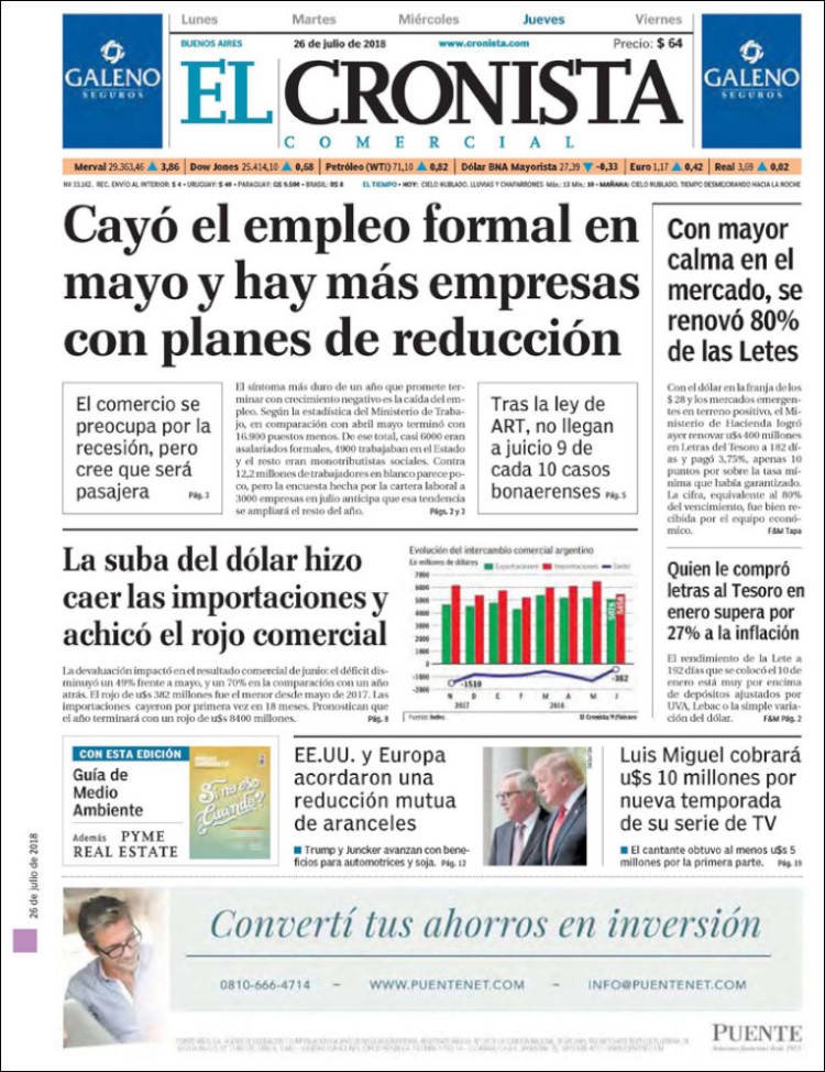 Las tapas de los diarios del jueves 26/7: La caída del empleo y la balanza comercial