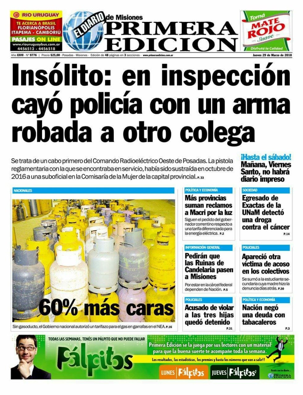 En la región los medios hablan de Semana Santa y el turismo, los aumentos del gas en garrafa y la inseguridad.