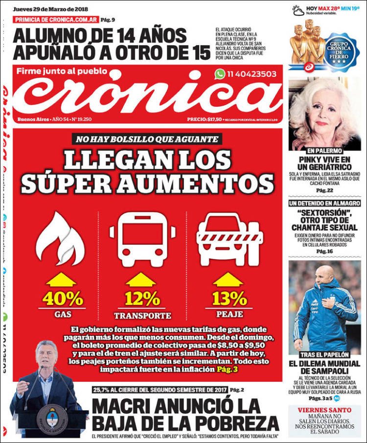 Las tapas de los diarios del jueves 29: bajó la pobreza y los nuevos aumentos de los servicios