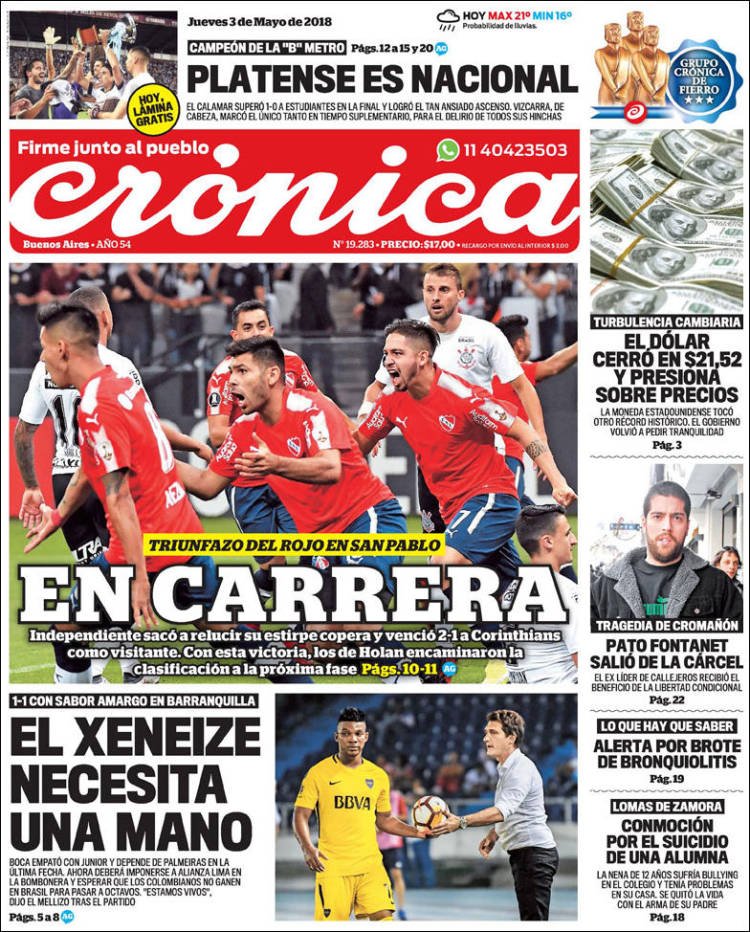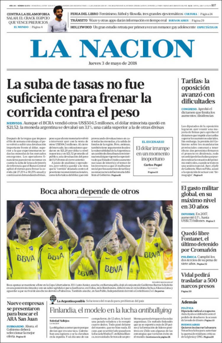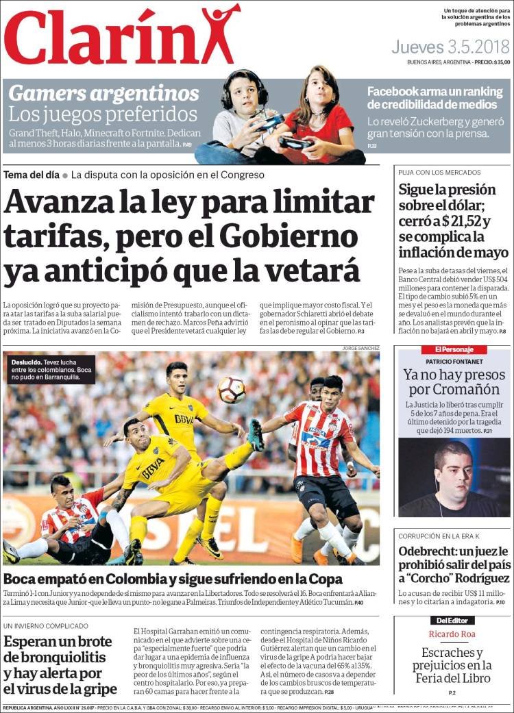 Las tapas de los diarios del jueves 3/5: Entre la carrera del dólar y los partidos de la Libertadores