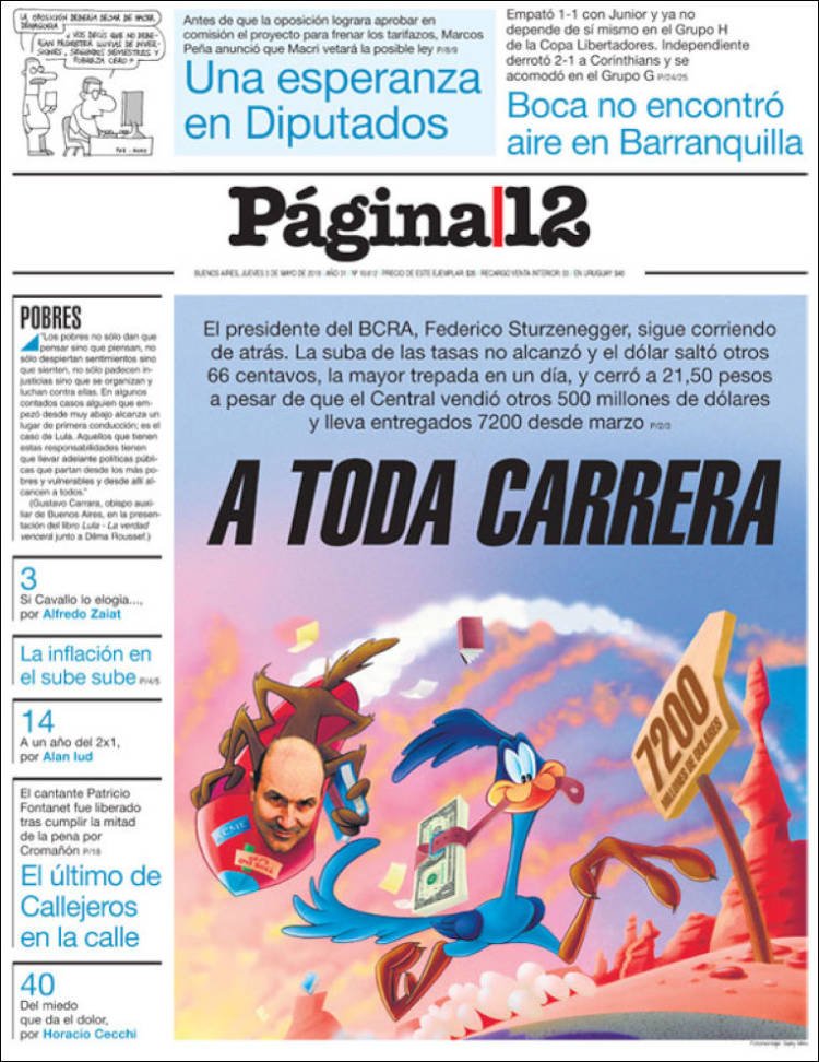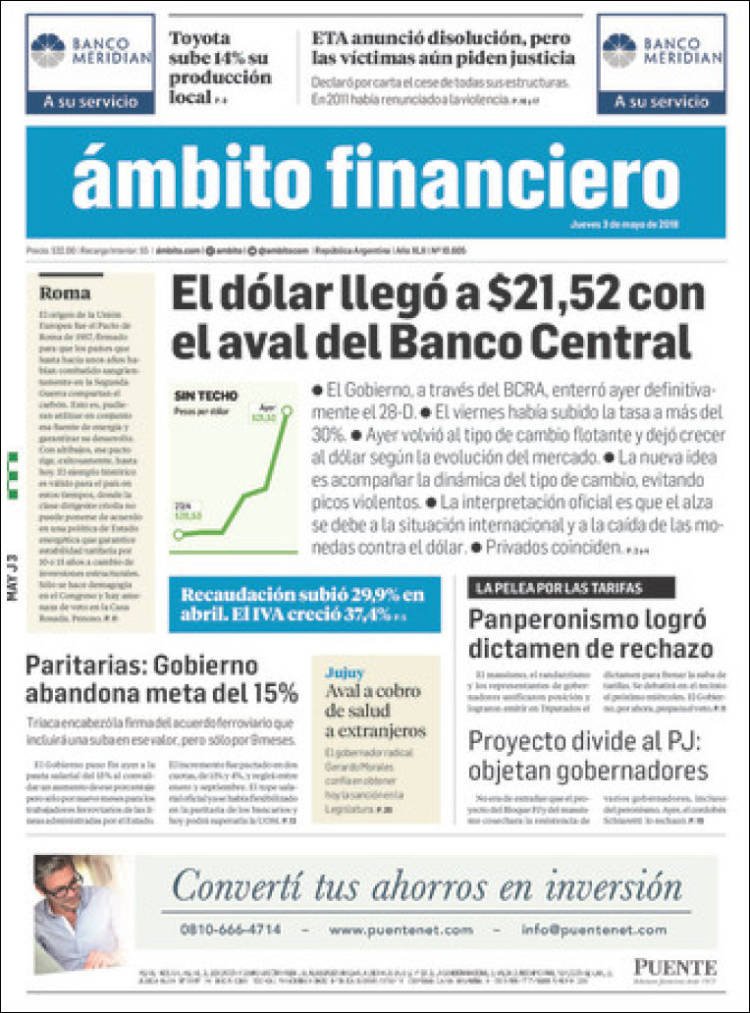 A continuación reproducimos las tapas de los principales diarios del país. La carrera del dólar en la city porteña ocupa los principales títulos y análisis.