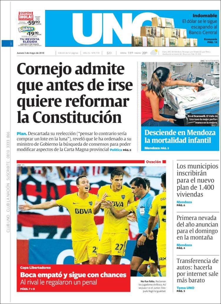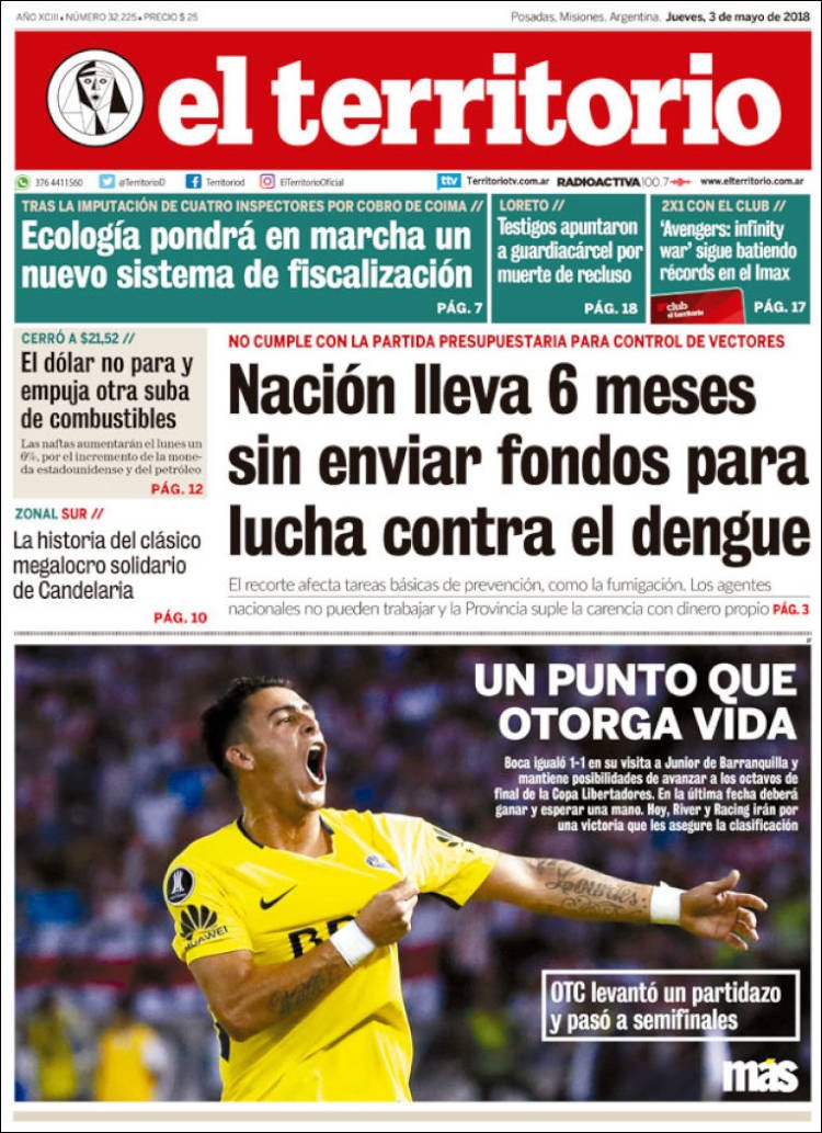 En el plano deportivo, el empate de Boca y el triunfo de Independiente son los temas principales.