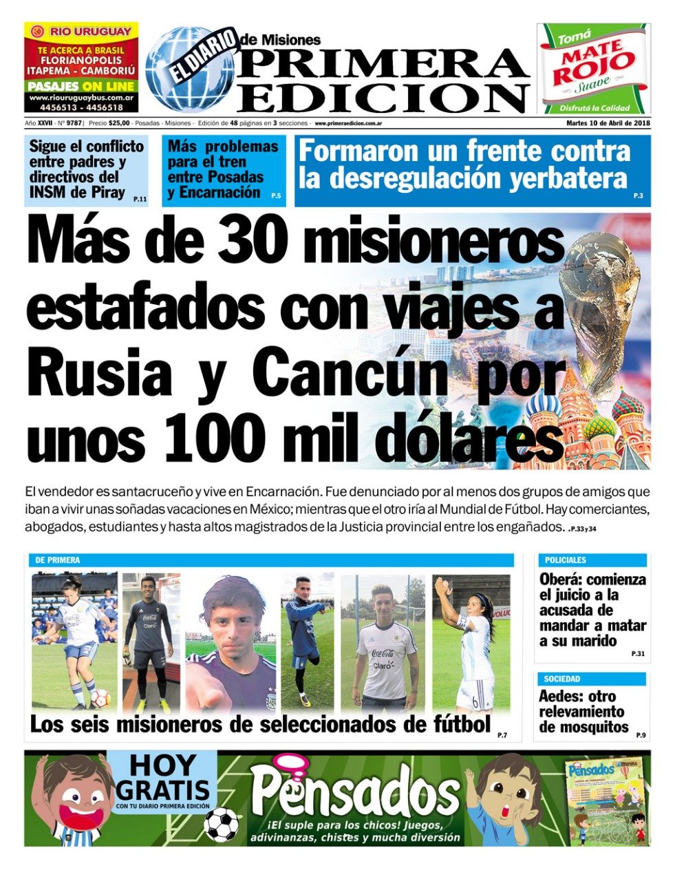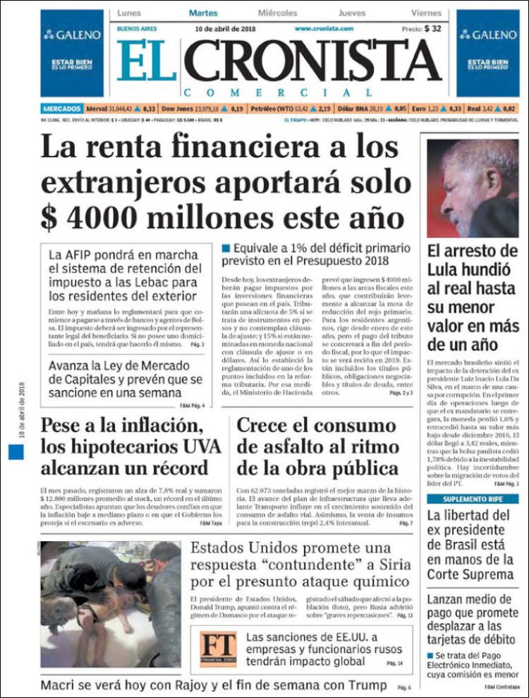 A continuación reproducimos las tapas de los principales diarios del país del día. Entre las noticias que se destacan está el comienzo del juicio a la banda “Los Monos” en Rosario, la visita del jefe de gobierno español Mariano Rajoy. En lo económico se habla del crecimiento de los créditos hipotecarios UVA a pesar de la inflación y la renta financiera a los extranjeros.