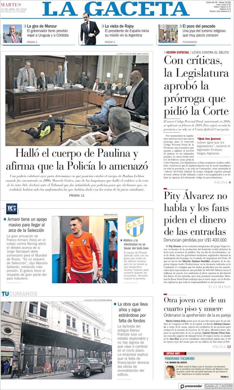 Las tapas de los diarios del martes 10: El juicio a la banda Los Monos y la visita de Rajoy