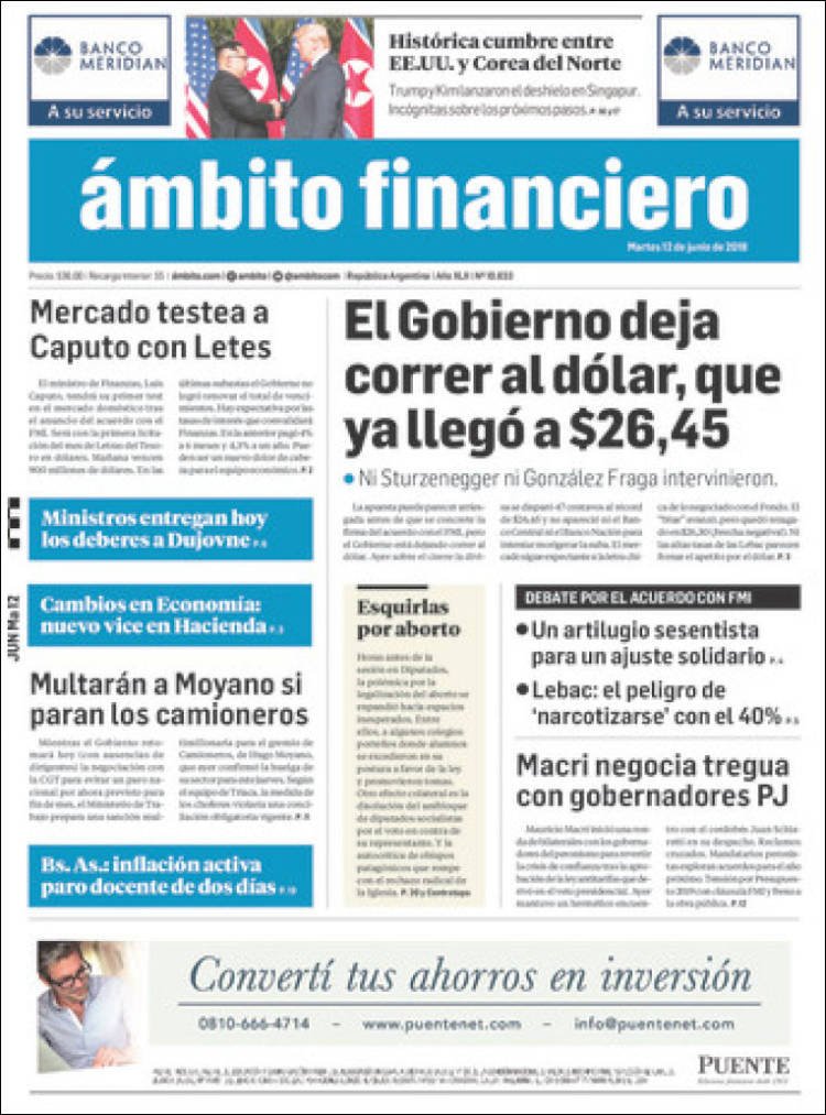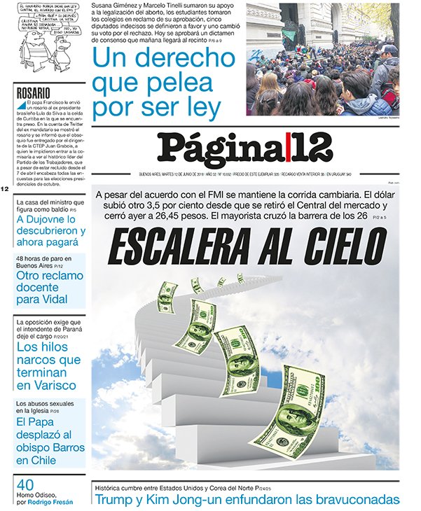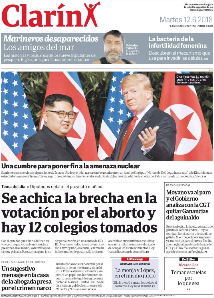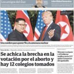 Las tapas de los diarios del martes 12-6: La previa del debate por la despenalización del aborto y la cumbre Trump-Kim