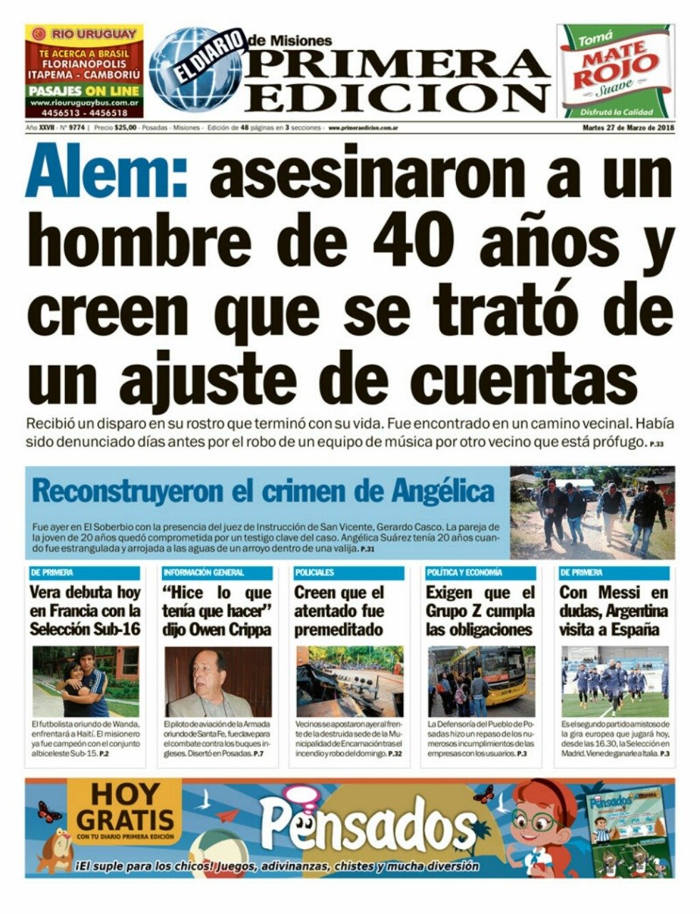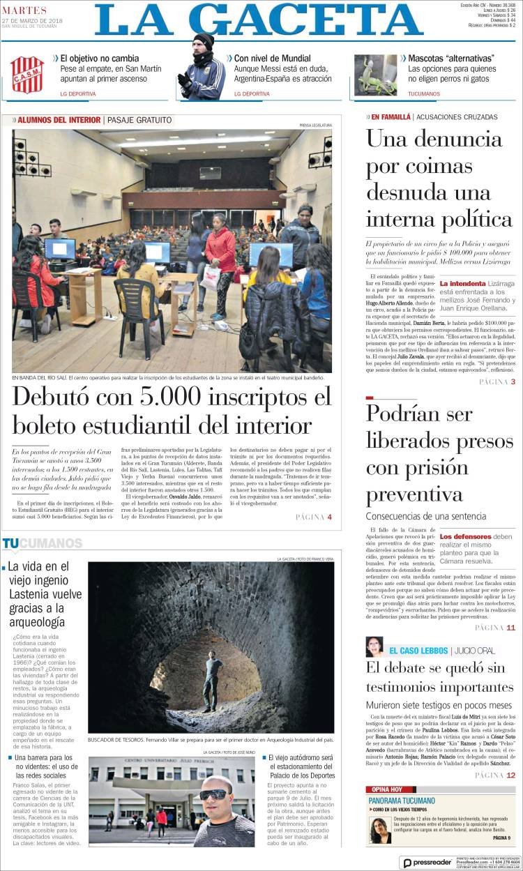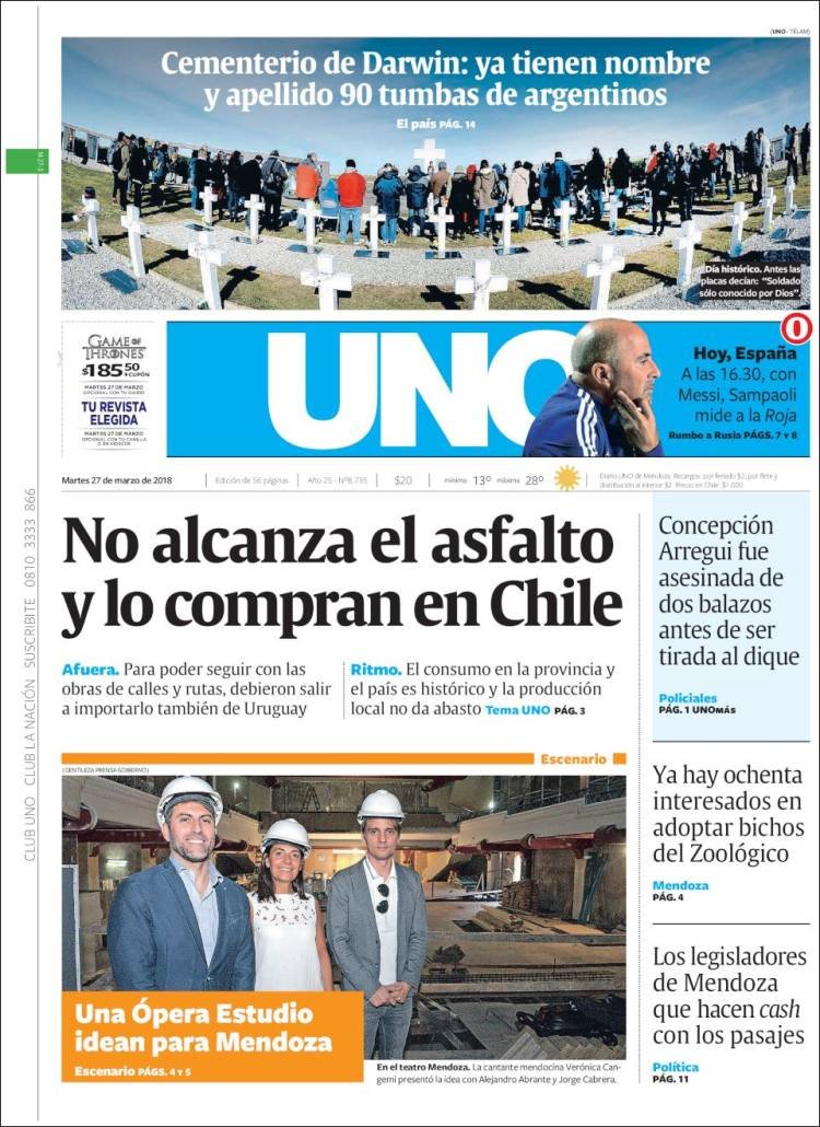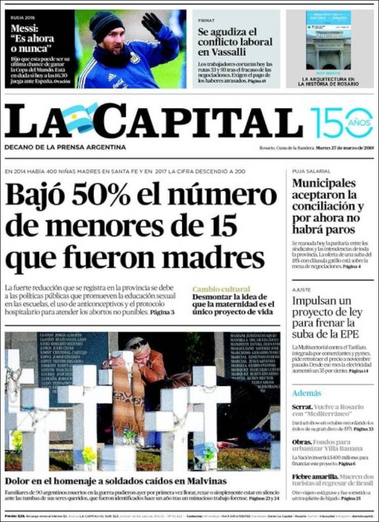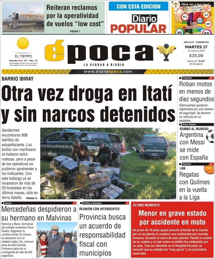 La visita de los familiares de los soldados cuyos restos fueron identificados en el cementerio de Darwin siegue siendo el tema de tapa de los diarios, los dos fallecidos por fiebre amarilla y la paritaria docente. En Misiones los medios hablan del fallecimiento de la yaguareté, la inseguridad y el camino al mundial de fútbol.