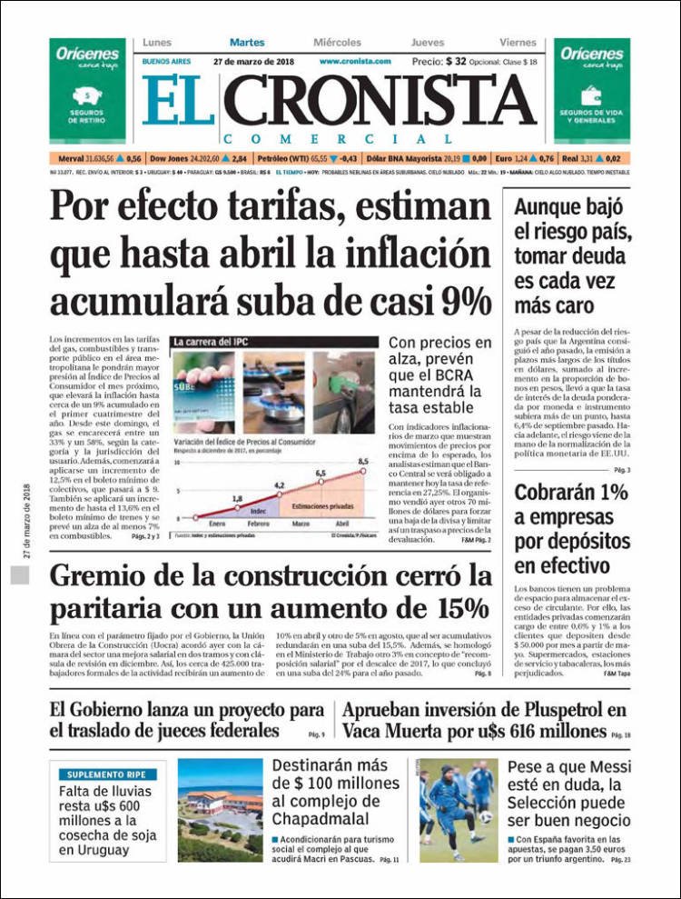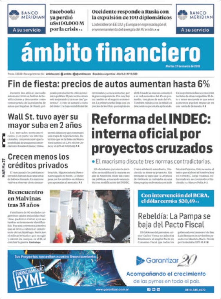 A continuación repasamos las tapas de los diarios del martes 27 de marzo. Los diarios económicos hacen foco en el impacto de la inflación en los precios. Las reformas del Indec y la decisión de La Pampa de bajarse del pacto fiscal.