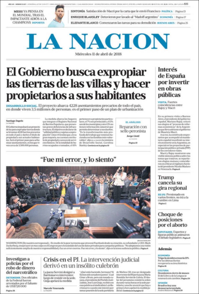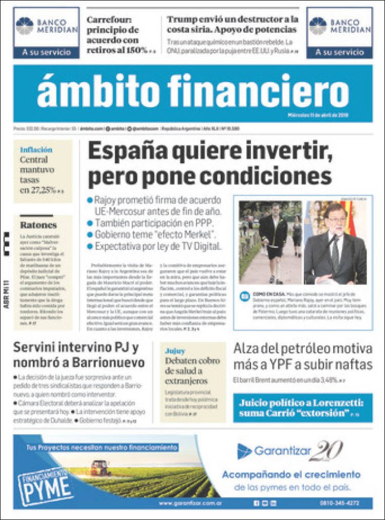 Las tapas de los diarios del miércoles 11: La intervención del PJ y las condiciones españolas para invertir en el país