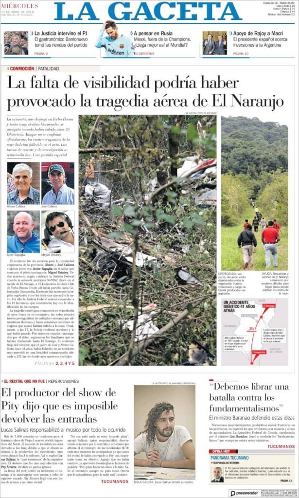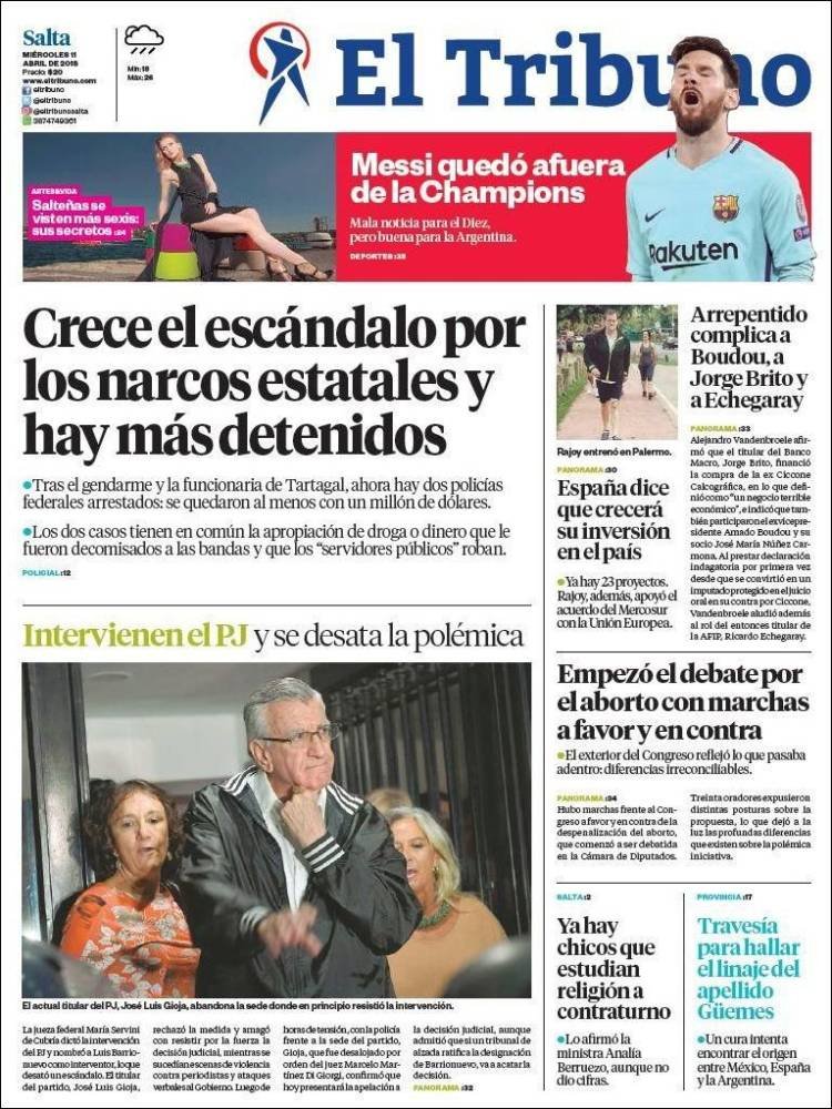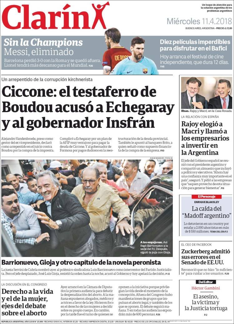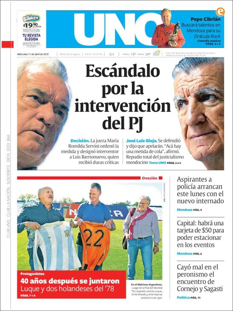 A continuación reproducimos las tapas de los diarios más importantes del país. La principal noticia es la intervención del PJ que coloca a Luis Barrionuevo como interventor, con todos los matices que generó esa medida de la Jueza Servini. Además se destacan las condiciones que planteó Rajoy para la llegada de inversiones españolas al país.