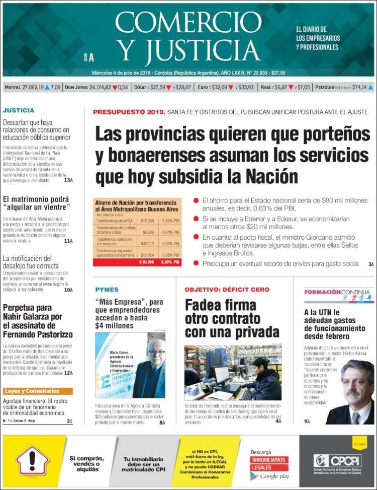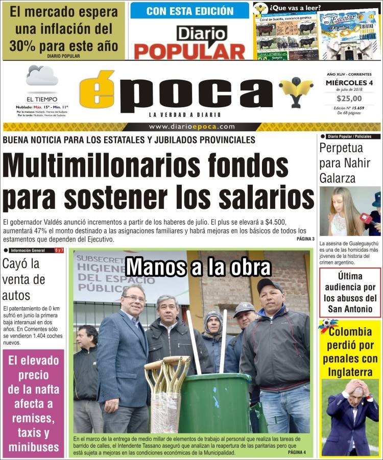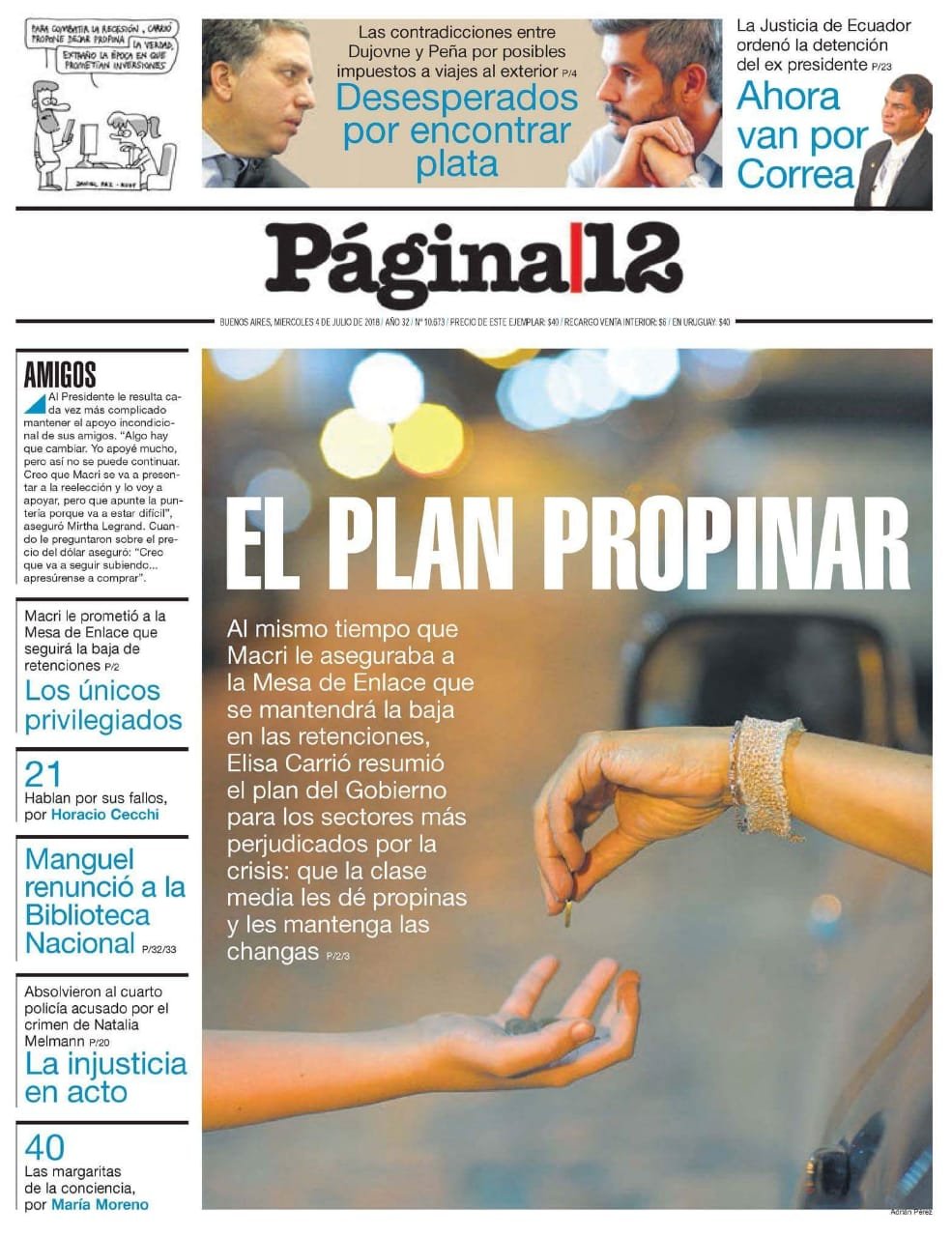 Las tapas de los diarios del miércoles 4/7: La política económica entre los bonos y las propinas