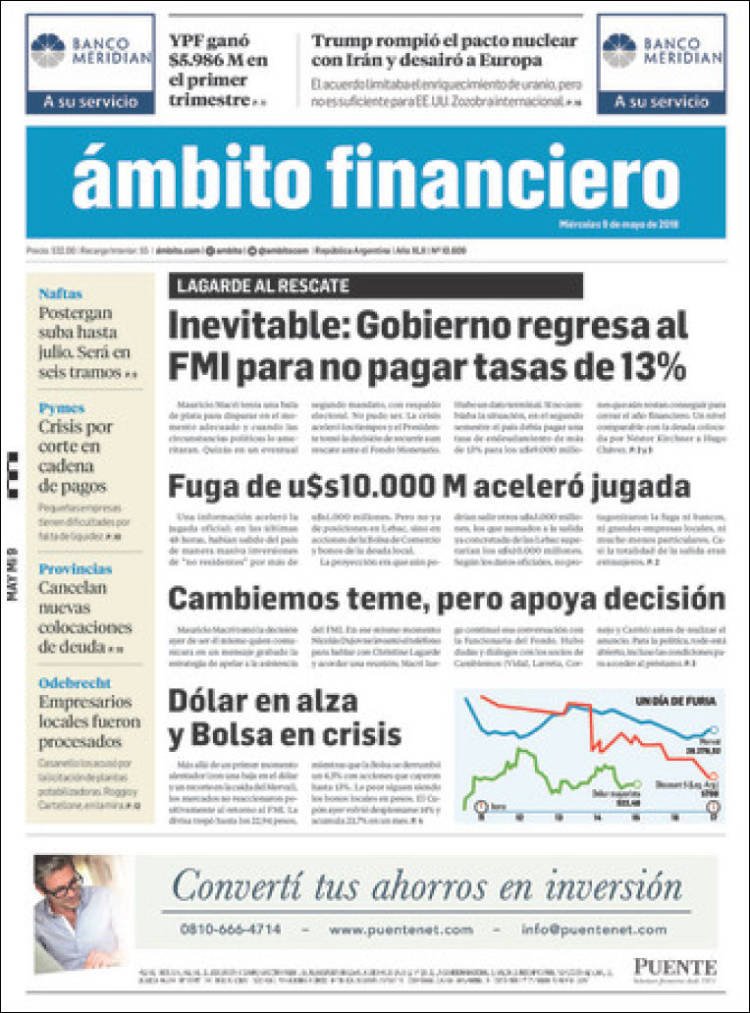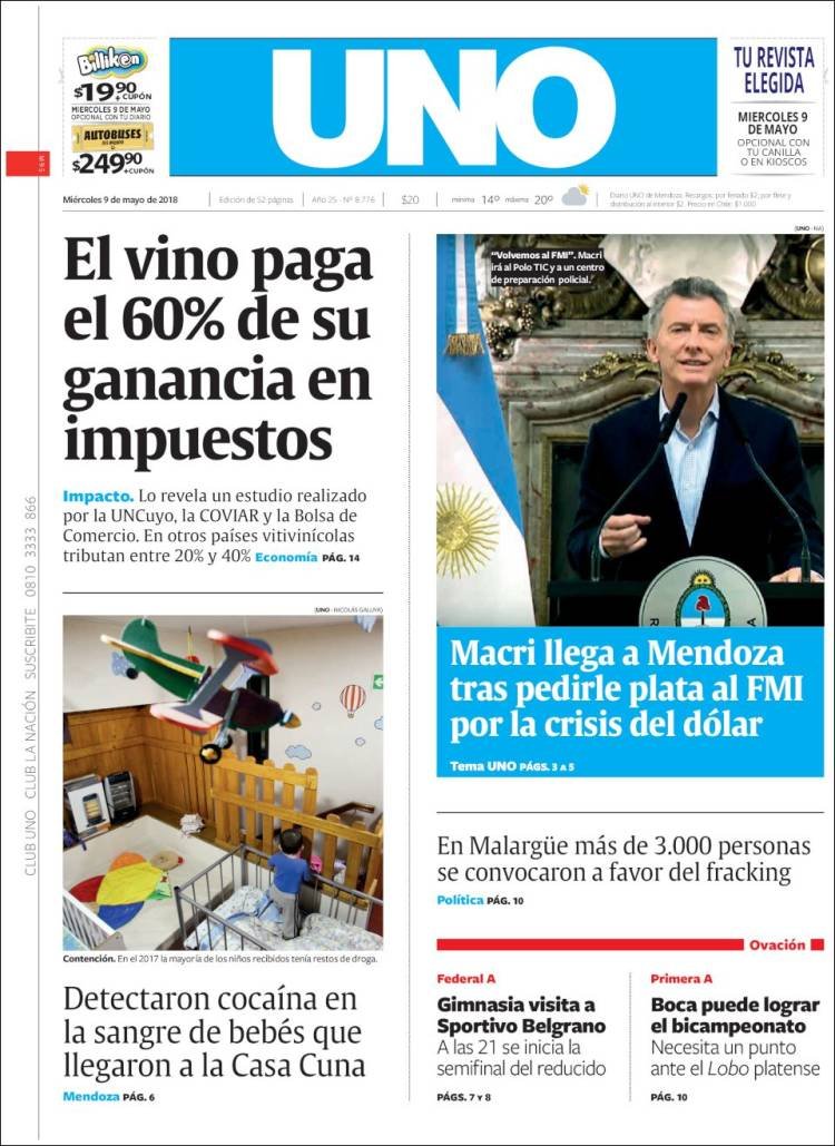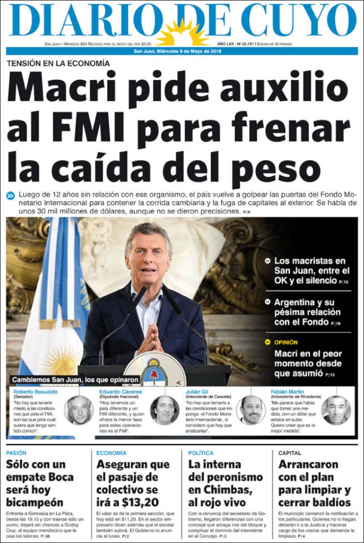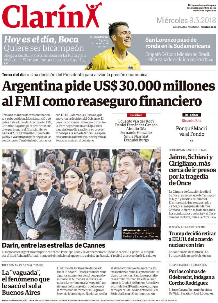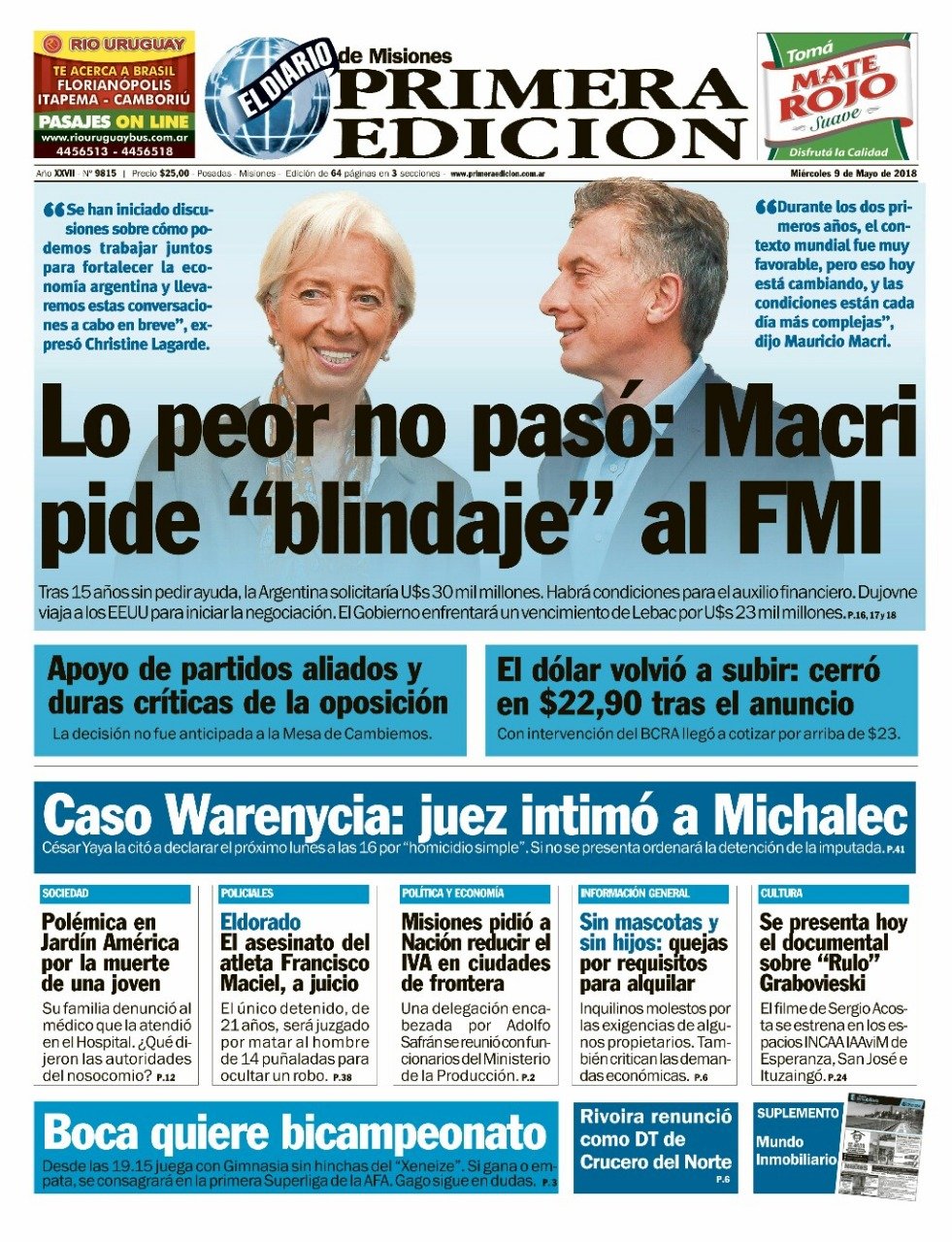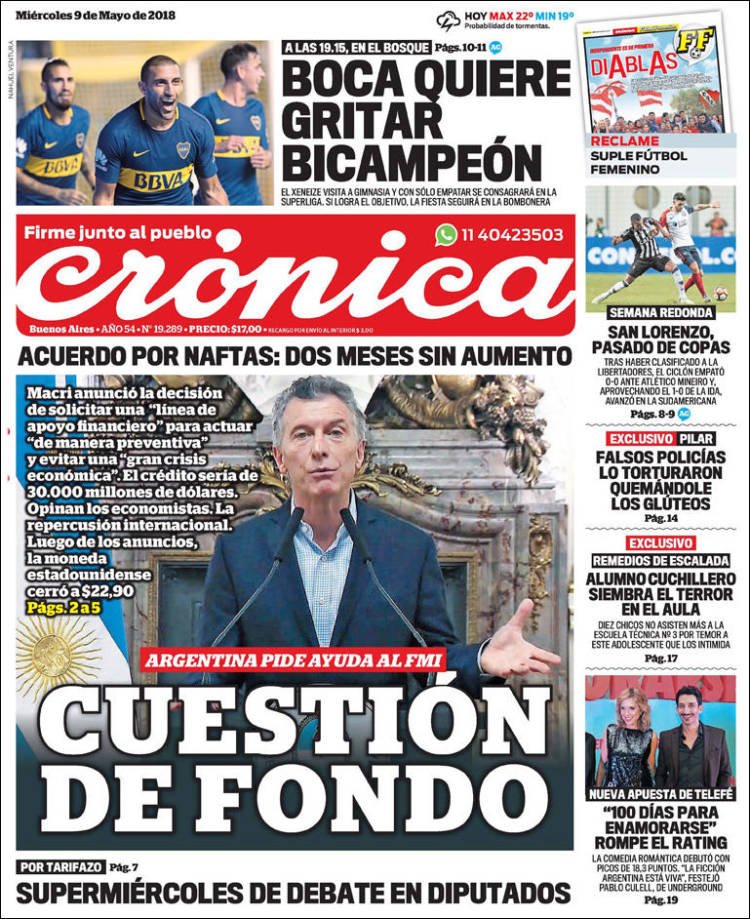 Las tapas de los diarios del miércoles 9/5: La vuelta al FMI y la búsqueda del bicampeonato de Boca
