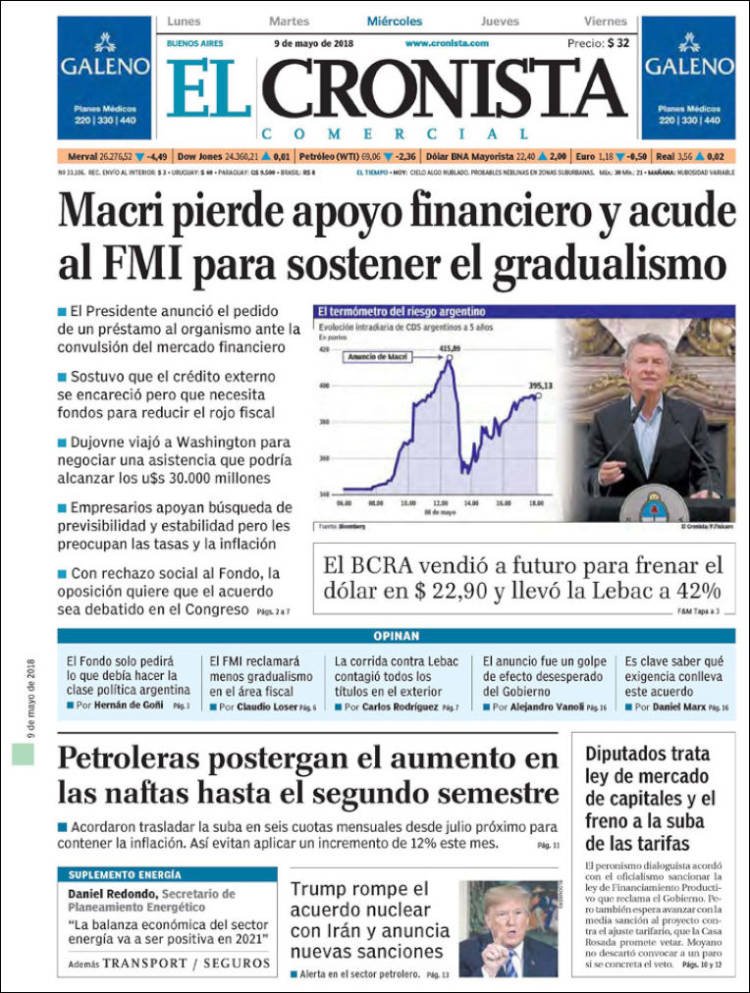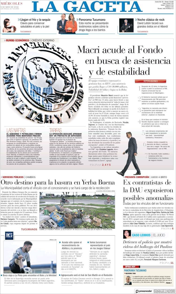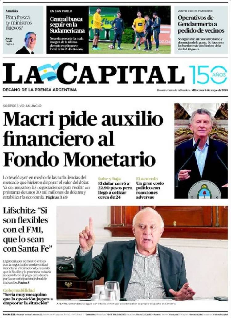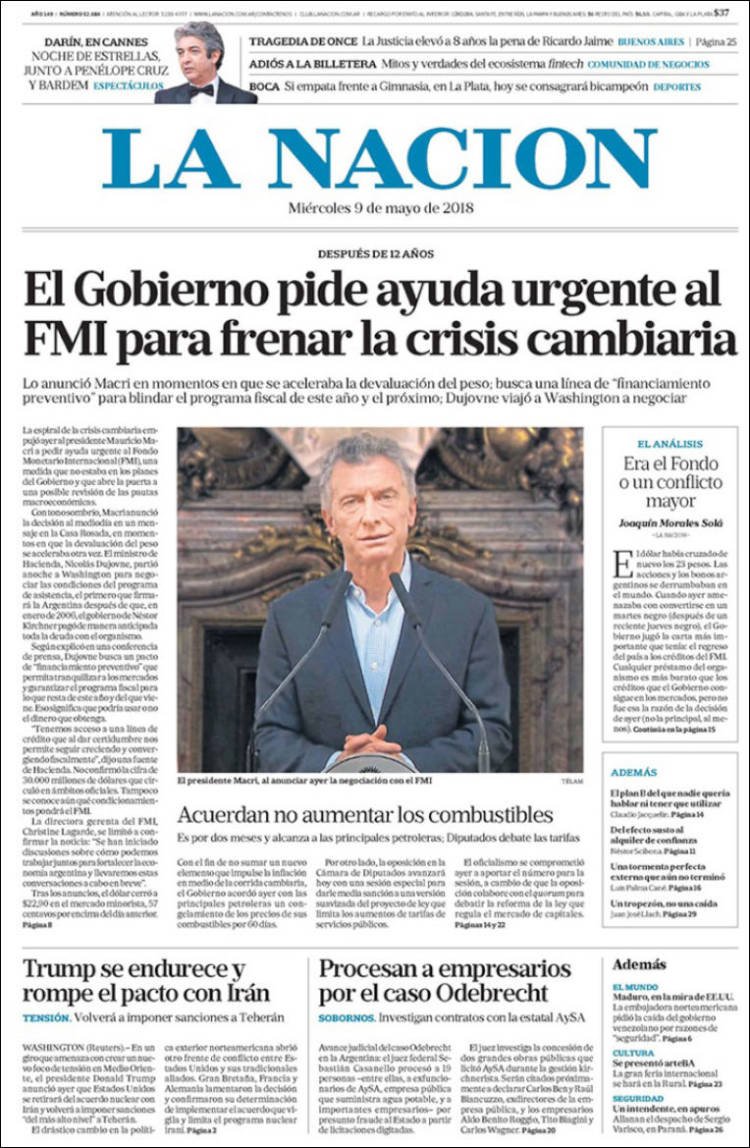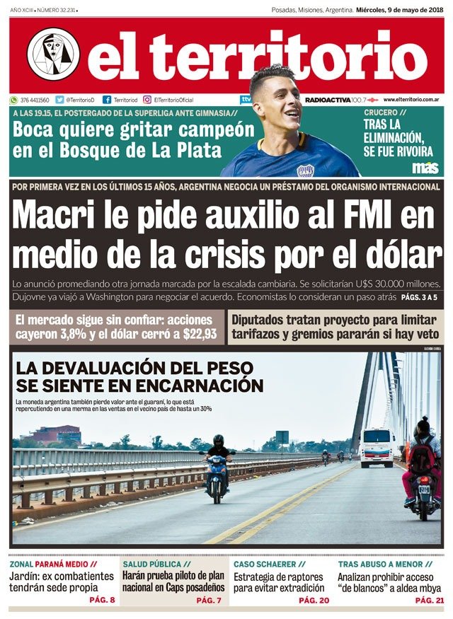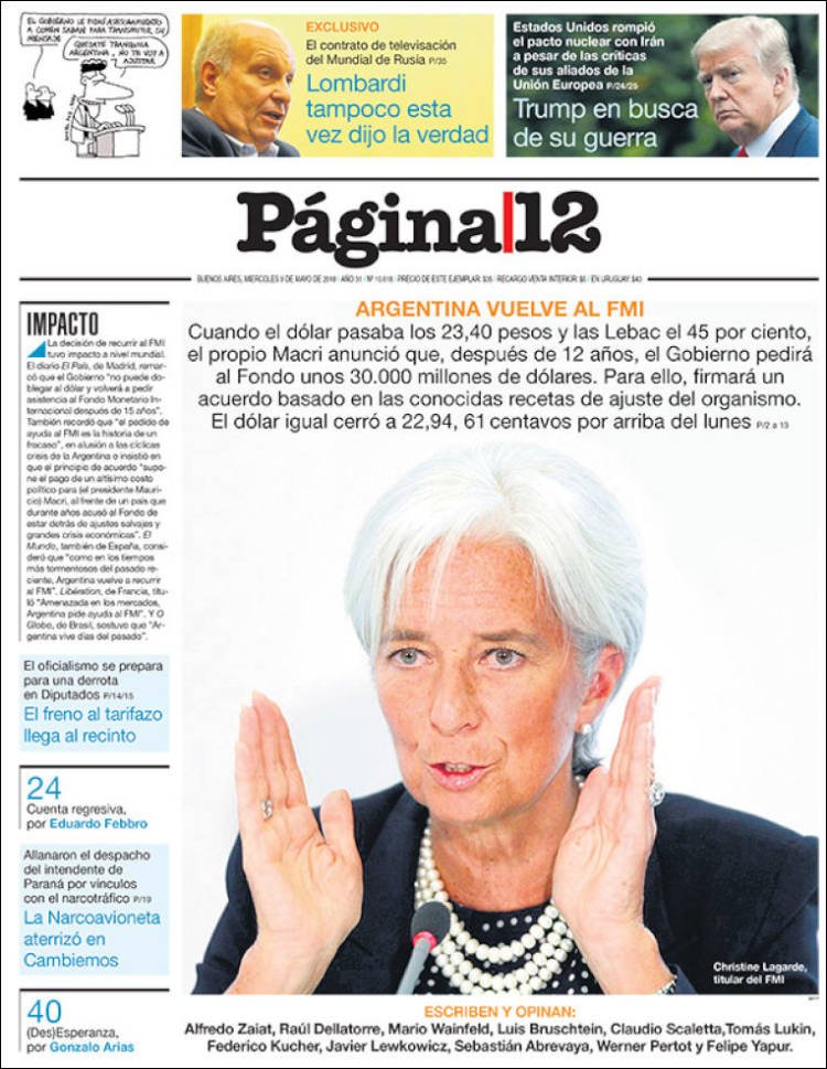 A continuación reproducimos las tapas de los principales diarios del país. El anunció del presidente Mauricio Macri de retomar los pedidos de prestamos al Fondo Monetario Internacional fue la noticia del día y así lo reflejaron todos los diarios del país, cada uno con su mirada.