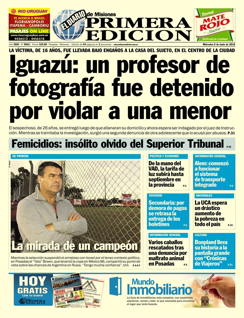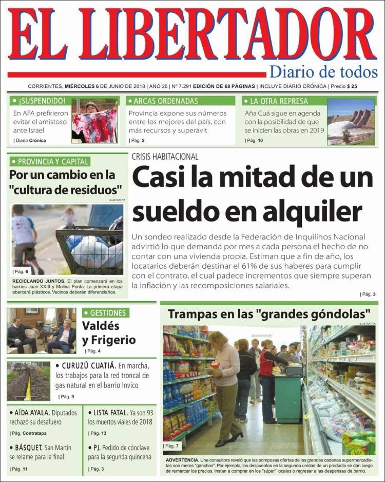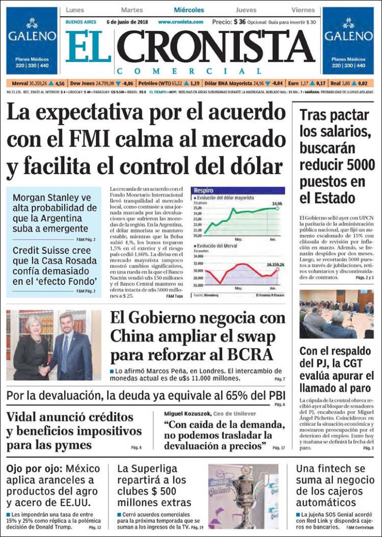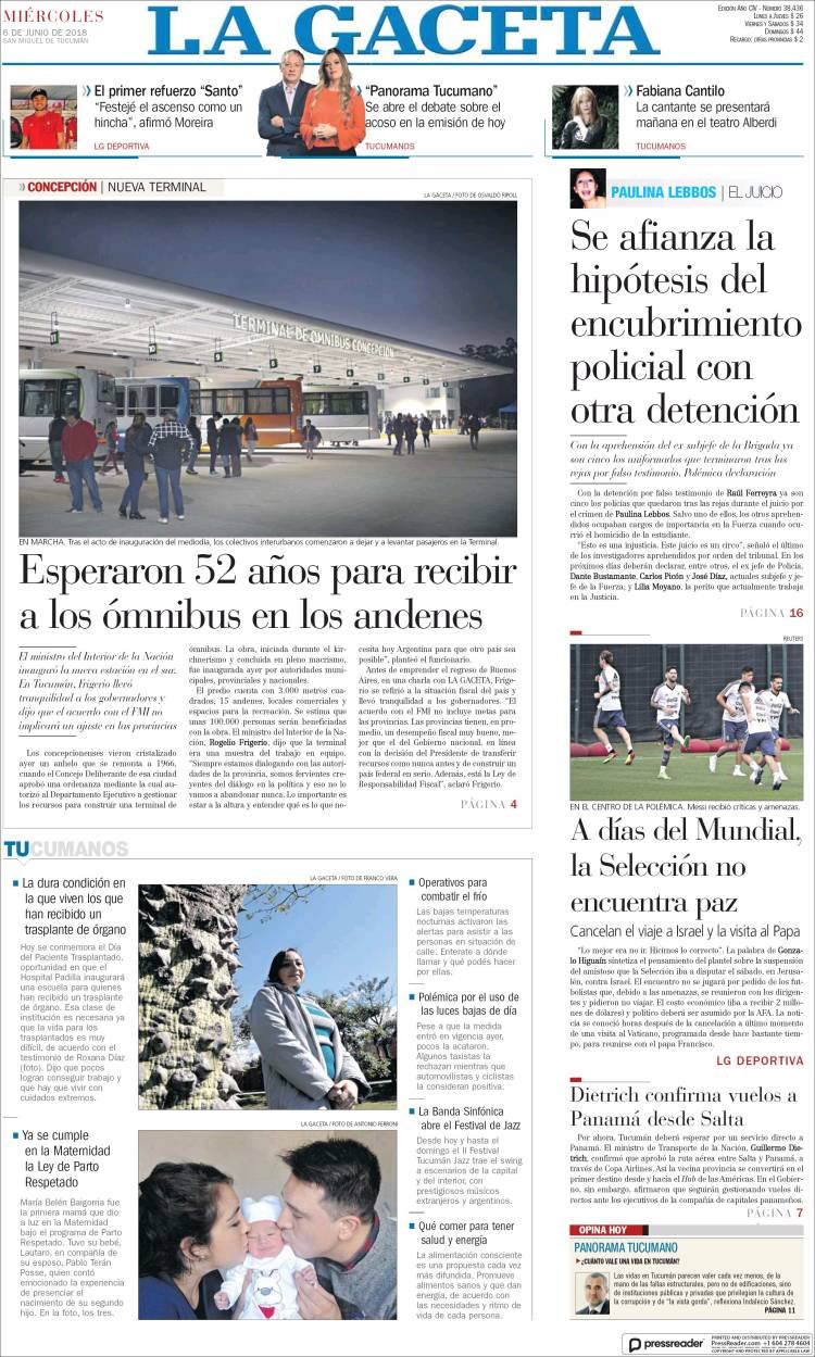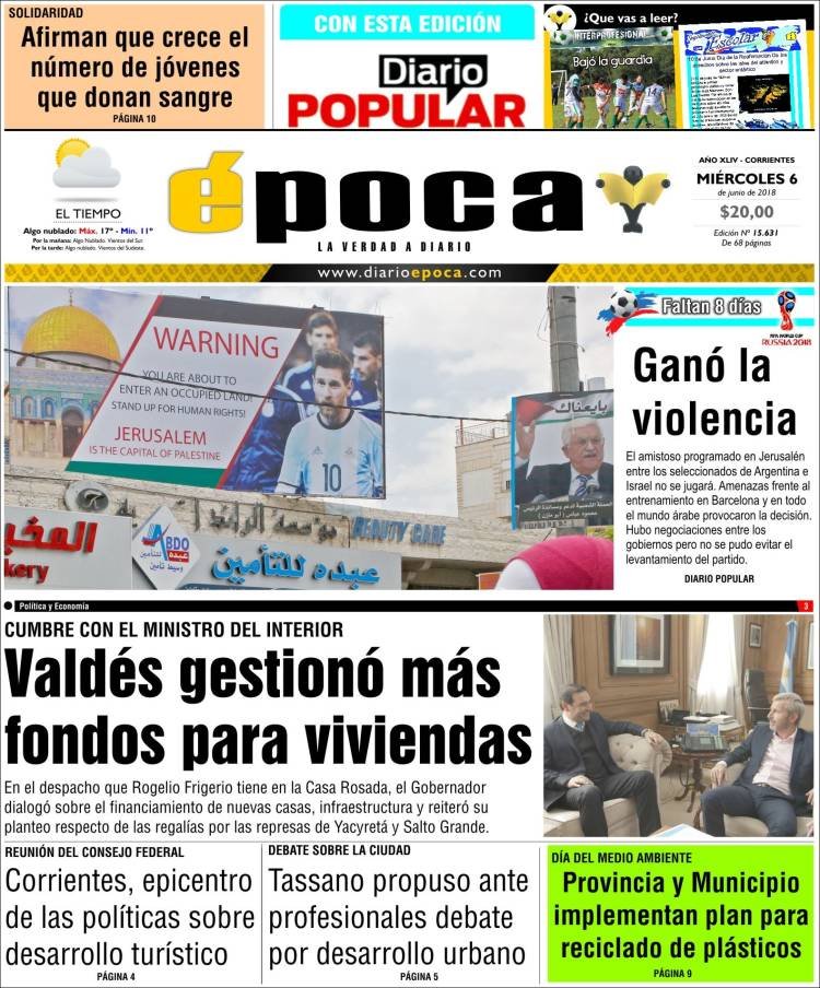 A continuación, repasamos la tapa de los diarios del miércoles 6 de junio. La polémica por la cancelación del partido en Jerusalén, la cancelación de la visita al Papa y lo que algunos califican como “papelón” internacional por parte de la AFA es el tema principal. Además, los mercados subieron en la Argentina y preanuncian, dicen analistas, un inminente acuerdo con el FMI.