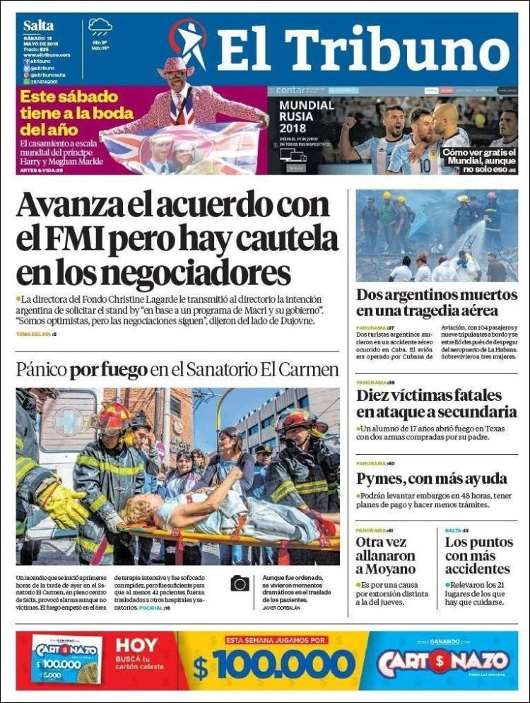 A continuación reproducimos las tapas de los principales diarios del país. El Acuerdo con el FMI, avanza según explicaciones de la propia Cristine Lagarde. En el país, el Presidente insiste en que el ajuste lo hagan las provincias y desde el Peronismo no creen que “lo peor ya paso”.