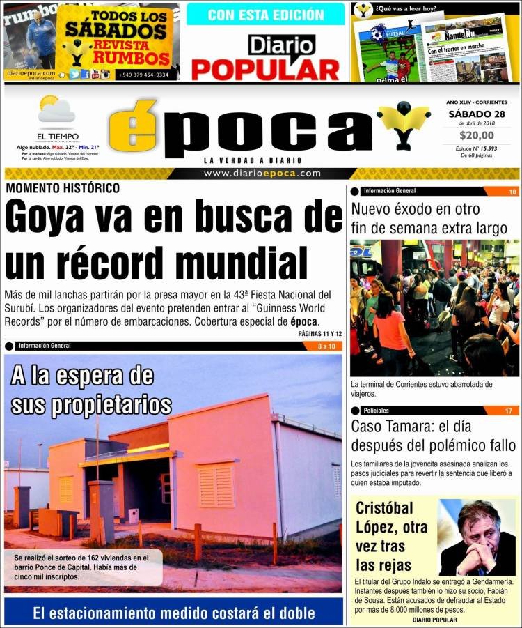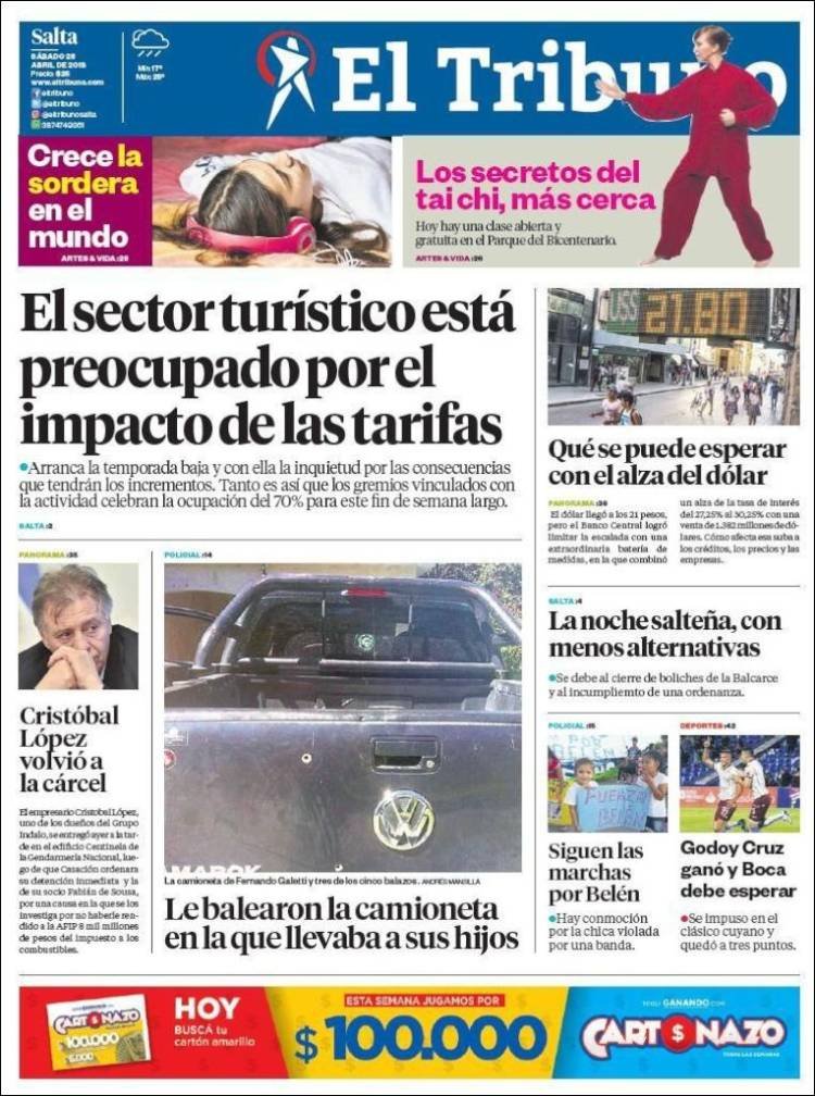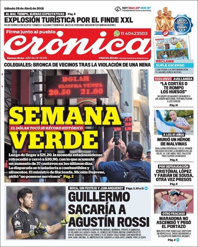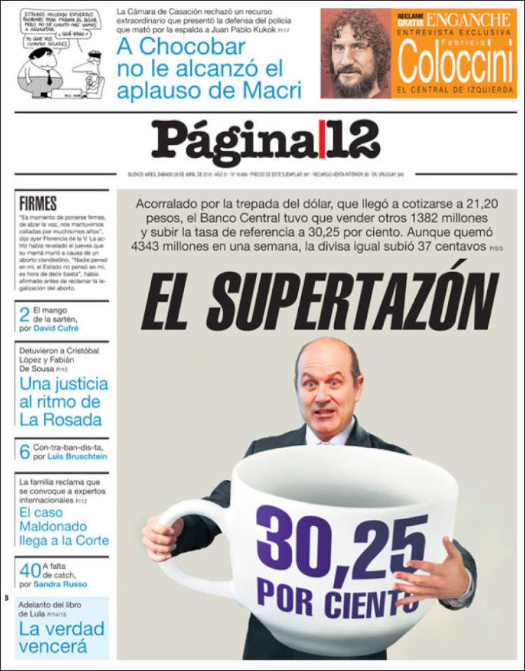 A continuación reproducimos las tapas de los principales diarios del país. La principal noticia del sábado fue la reacción del Banco Central a otro día de movilidad cambiaria. La suba de tasas determinada por la entidad abre un nuevo panorama para la primer semana de mayo.