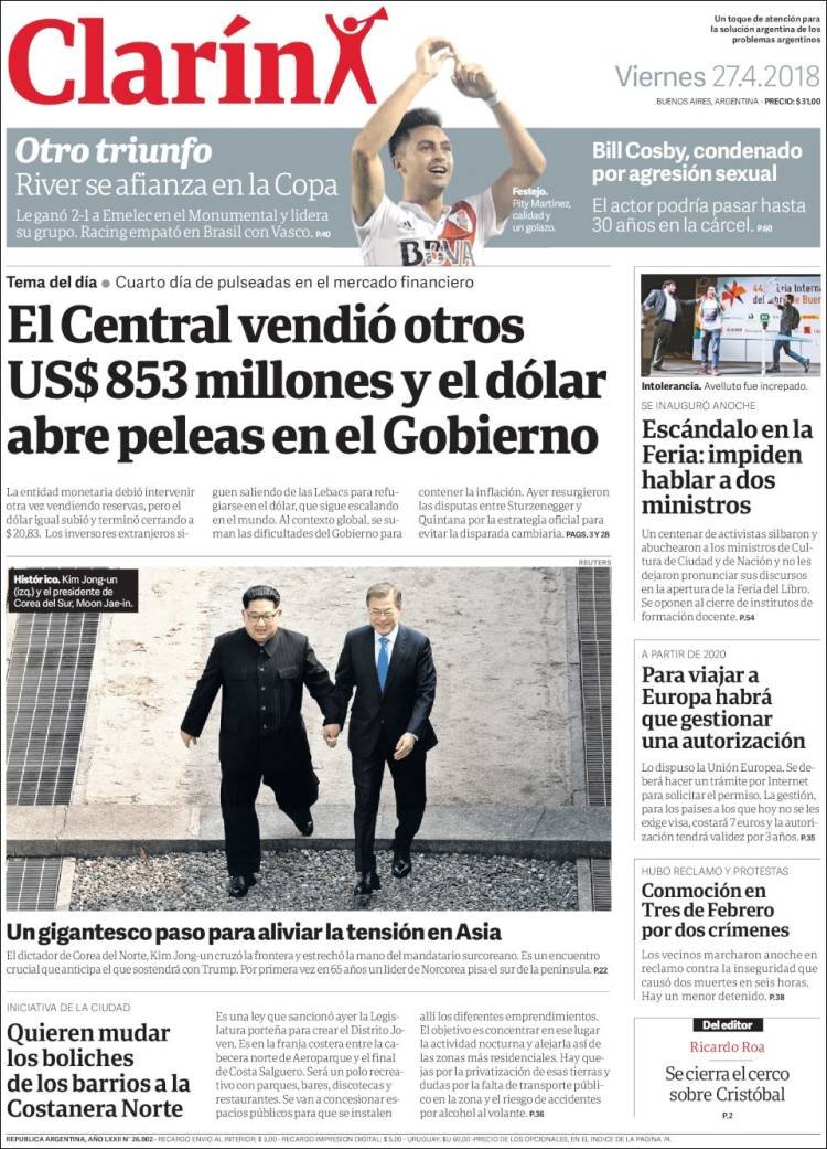 Las tapas de los diarios del viernes 27/4: La suba del dólar y el triunfo de River