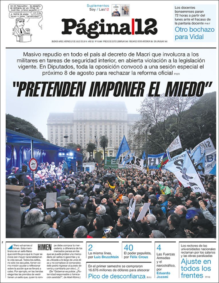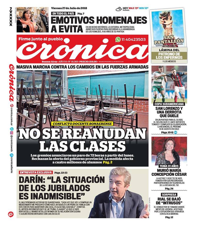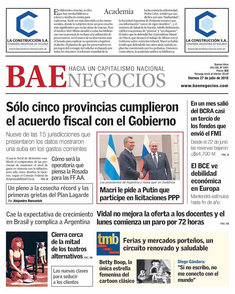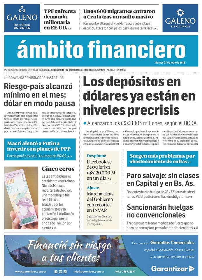 Las tapas de los diarios del viernes 27/7: El dolar en una pausa y el debate del ajuste 2019